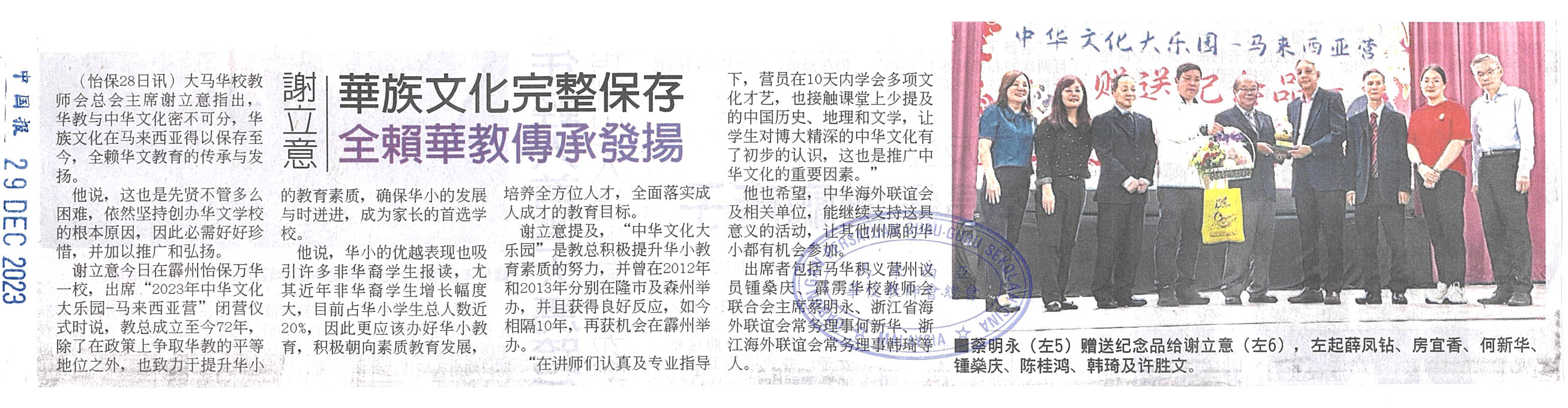 谢立意:华族文化完整保存 全赖华教传承发扬 WhatsApp 上一篇文章: 吴泉有:屋顶漏水硬体设备损坏 新华小学426要筹60万 上一页 下一篇文章: 微型华小迁校后茁壮成长 明德正校迎文化转型 下一页