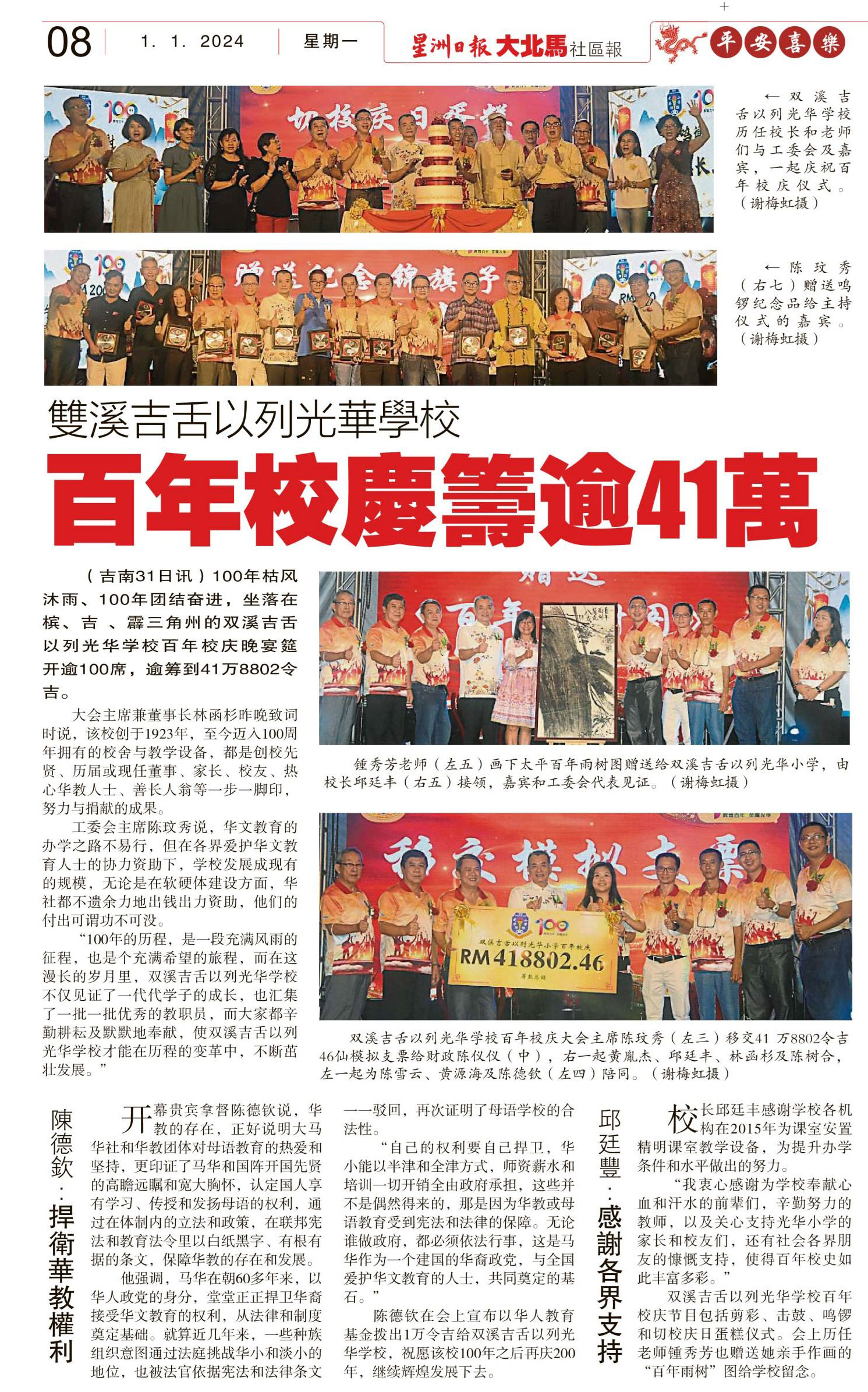 双溪吉舌以列光华学校 百年校庆筹逾41万