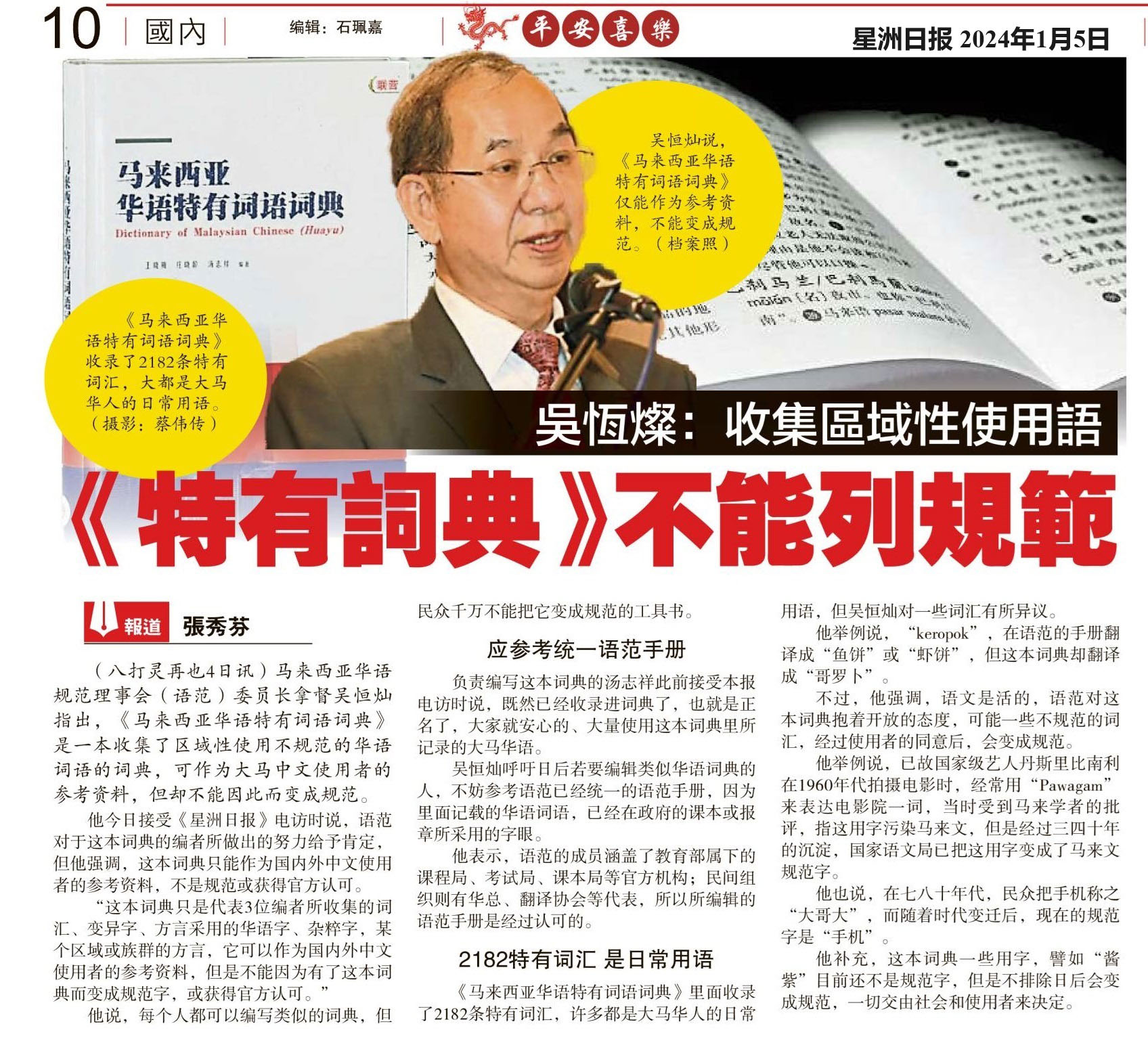 吴恒灿:收集区域性使用语《特有词典》不能列规范