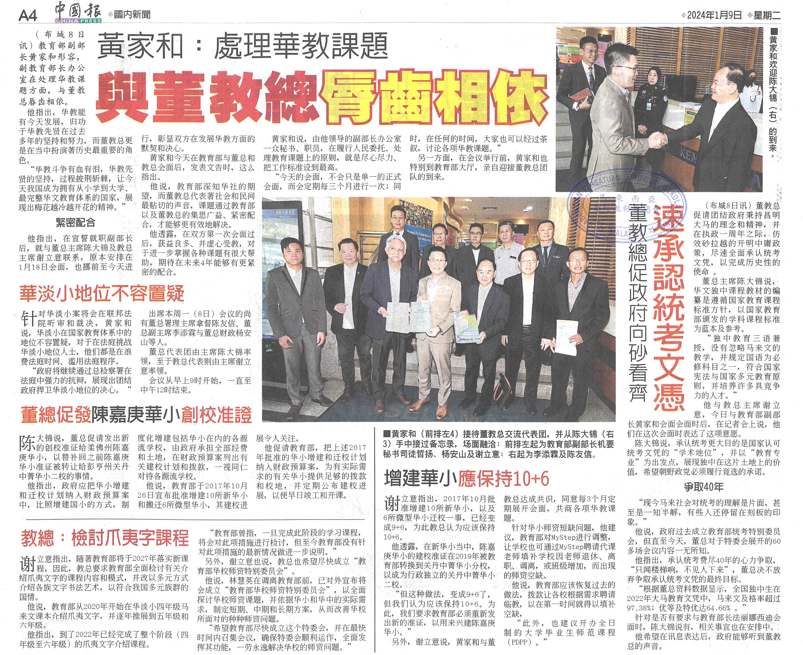 董教总与黄家和交流会新闻剪报