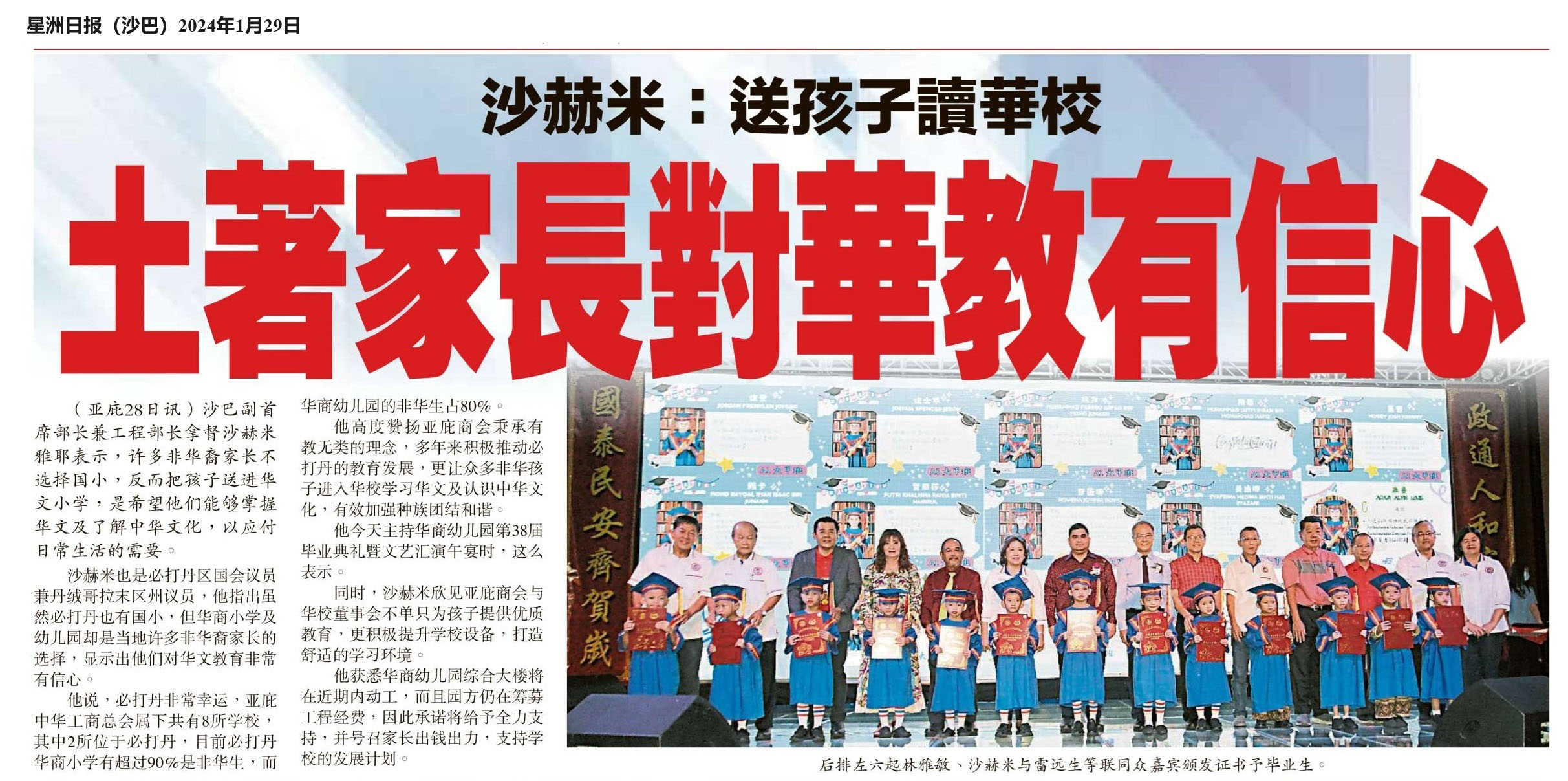 沙赫米:送孩子读华校 土著家长对华教有信心 WhatsApp 上一篇文章: 年满65岁 服务超过25年 独中教职员可领感恩金 上一页 下一篇文章: 魏家祥:新廊华小生达饱和点 动工建沈小刻不容缓 下一页