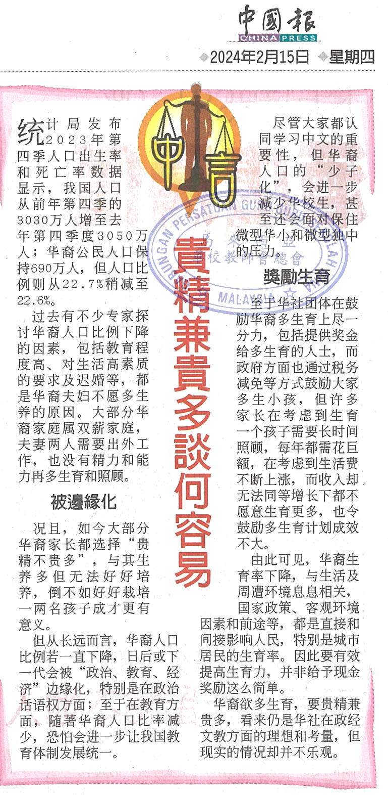 华裔出生结婚率皆跌  统计局:巫印裔也降