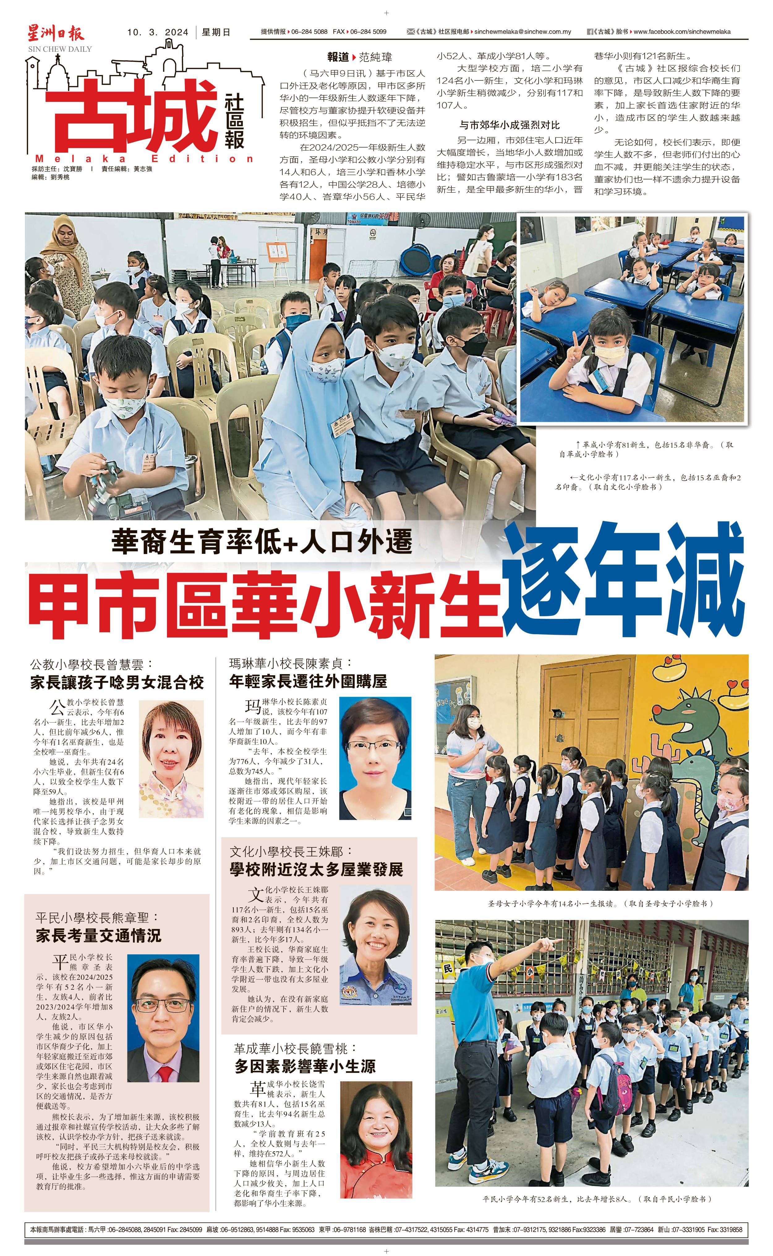 华裔生育率低+人口外迁 甲市区华小新生逐年减