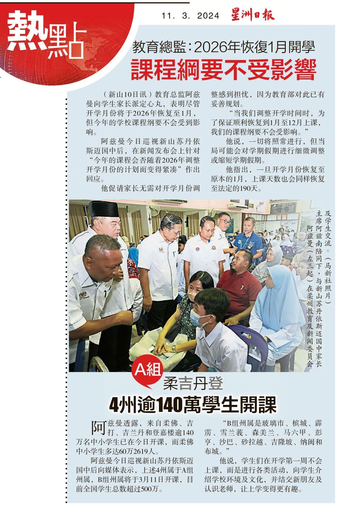 教育总监:2026年恢复1月开学 课程纲要不受影响