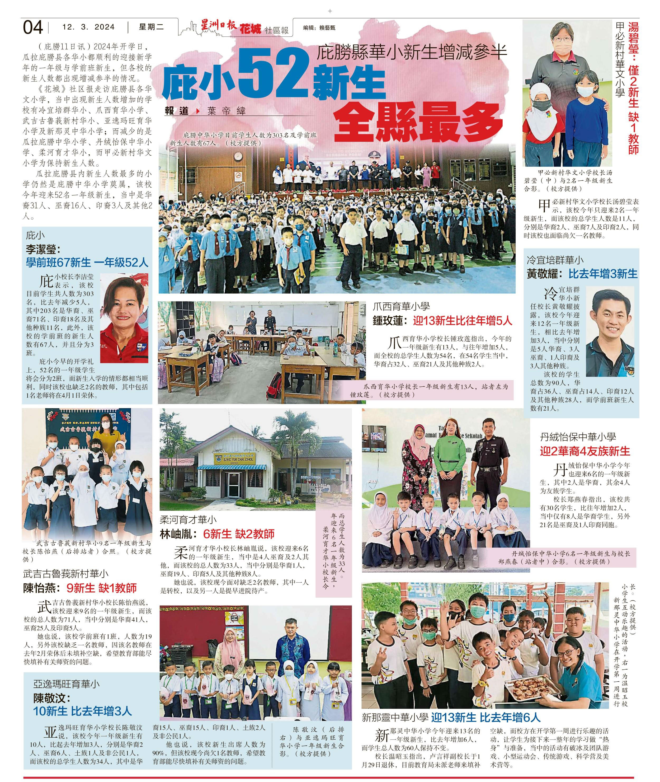 森州庇朥县华小新生增减参半 庇小52新生全县最多