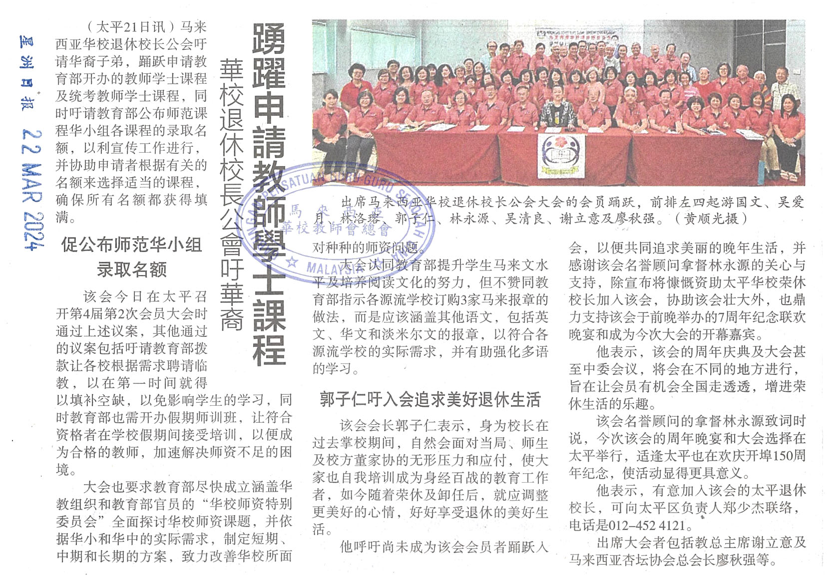 华校退休校长公会吁华裔踊跃申请教师学士课程 WhatsApp 上一篇文章: 育华小学迎10新生 校长:盼3年内达50学生目标 上一页 下一篇文章: 公账会:教部面对拨款问题 残旧校舍拖12年未修葺 下一页