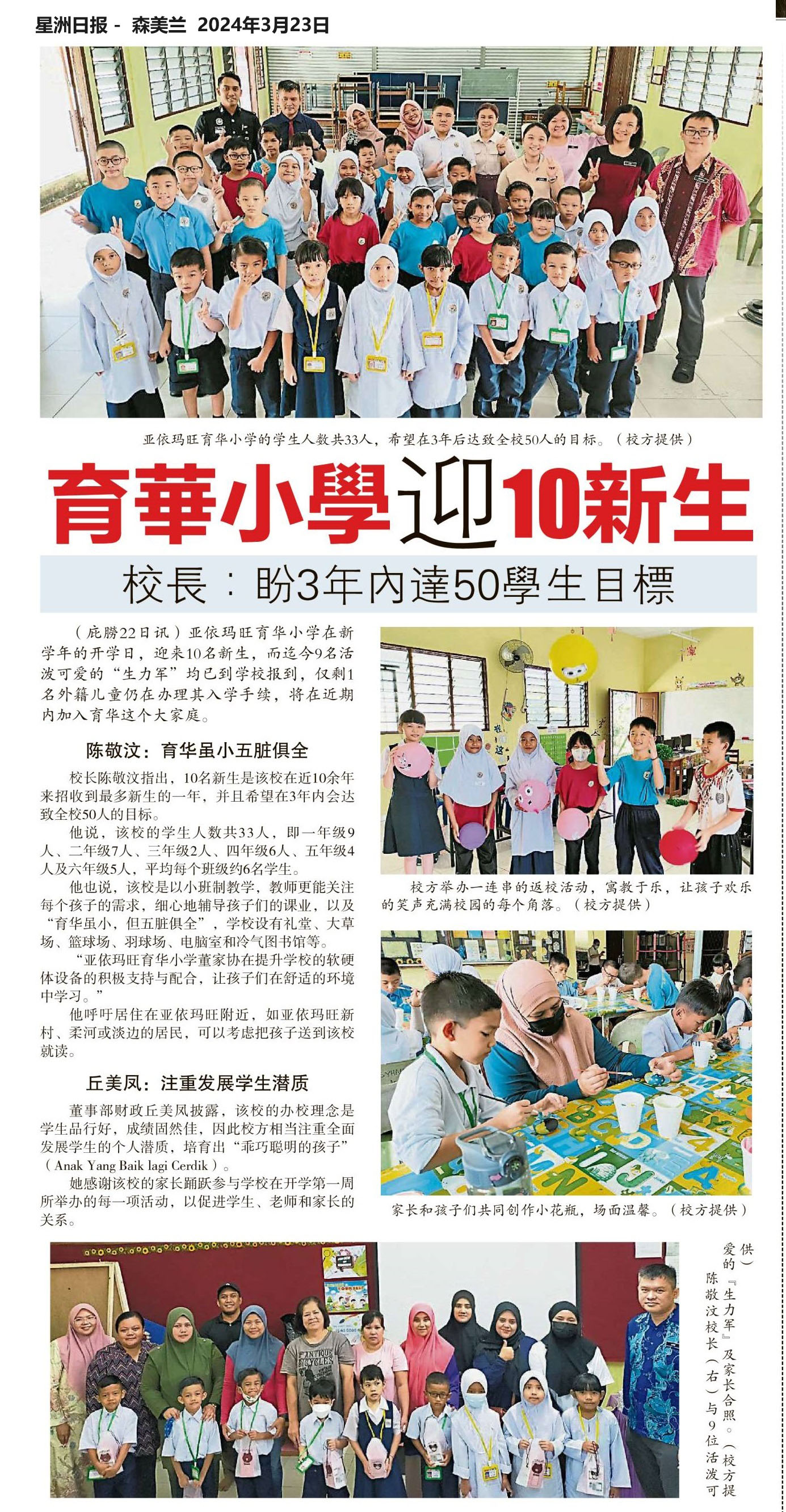 育华小学迎10新生 校长:盼3年内达50学生目标