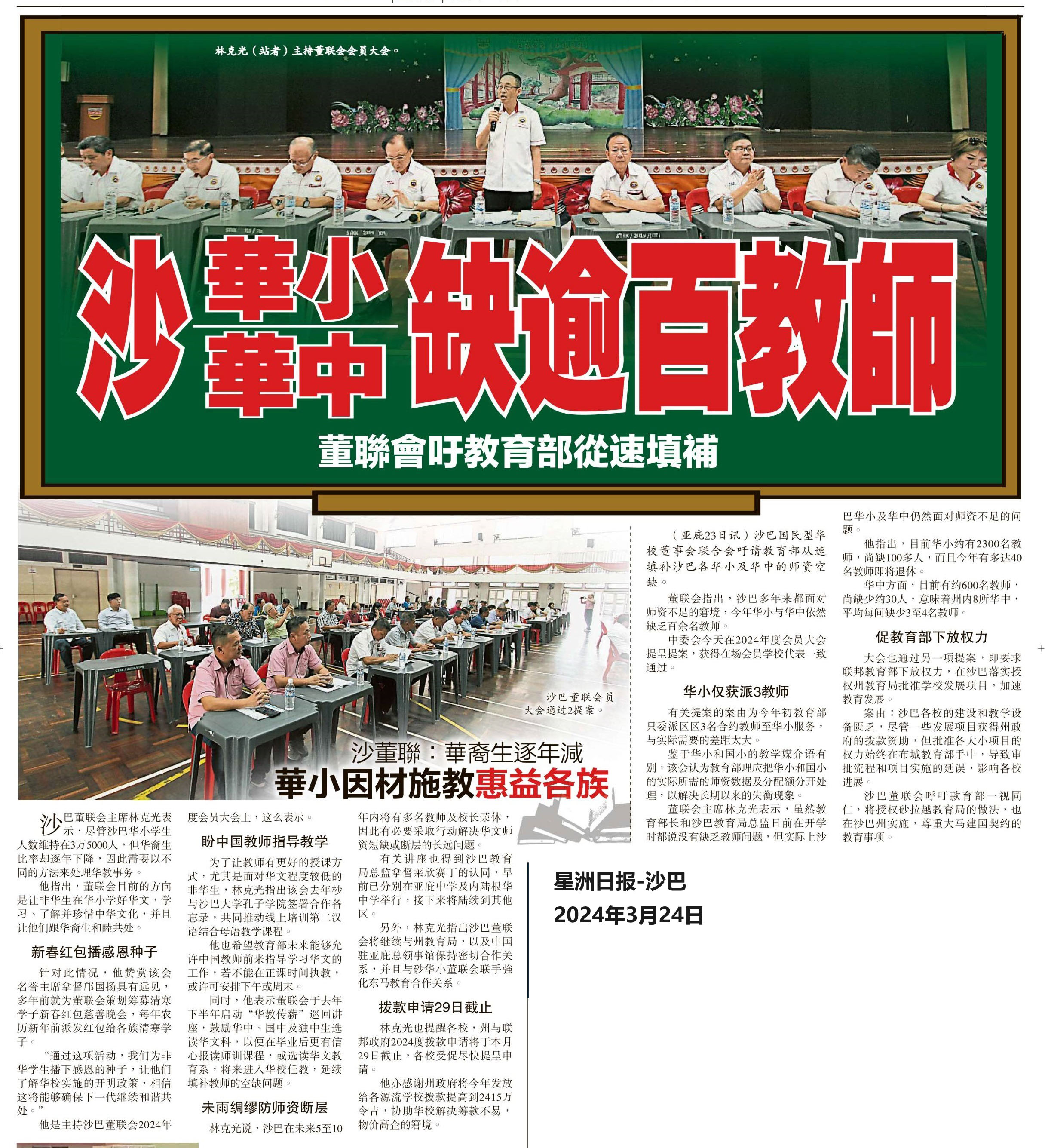 沙华小华中缺逾百教师 董联会吁教育部从速填补