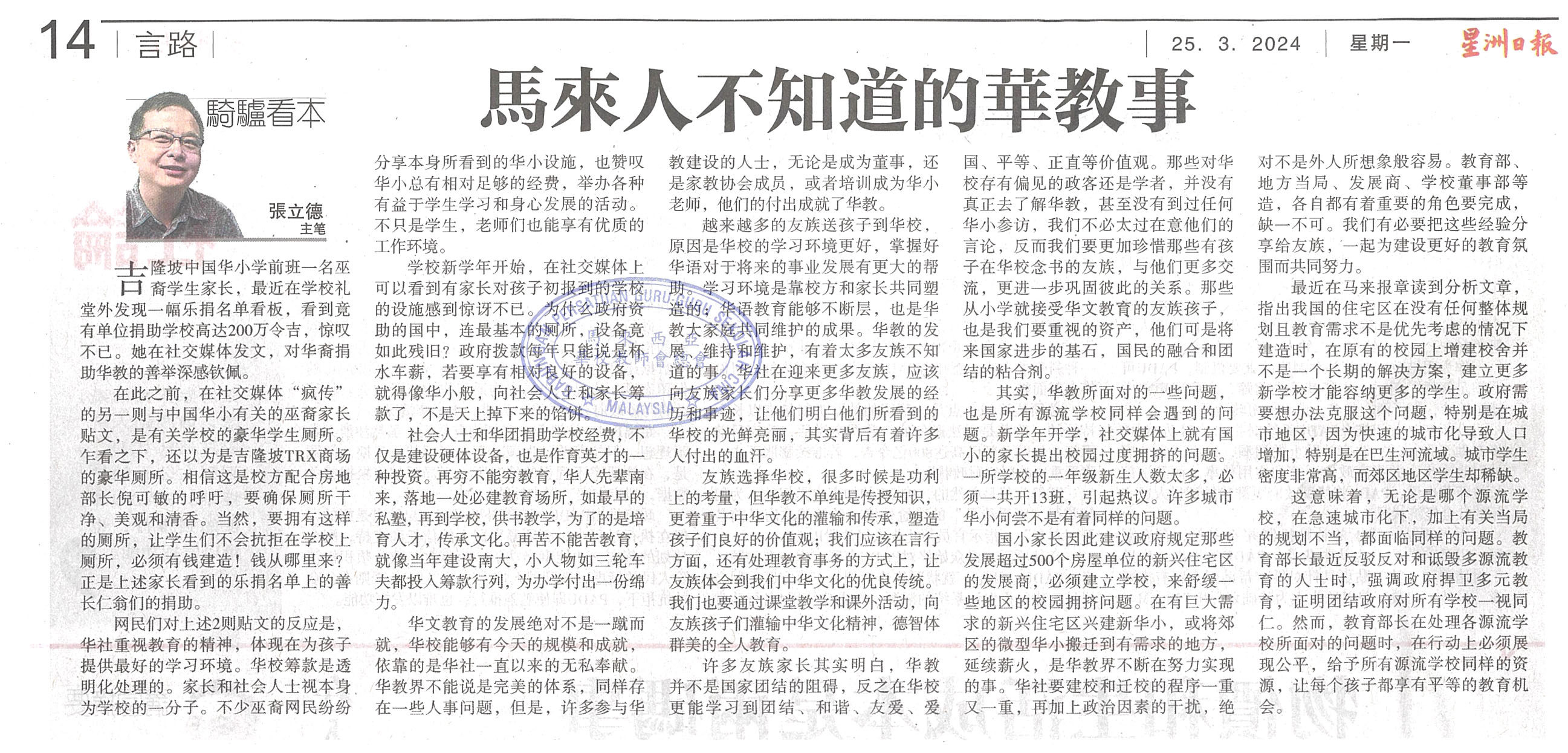 张立德:马来人不知道的华教事