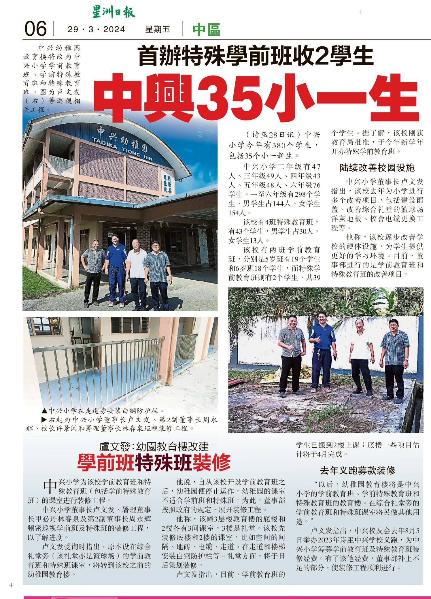 首办特殊学前班收2学生 诗巫中兴35小一生
