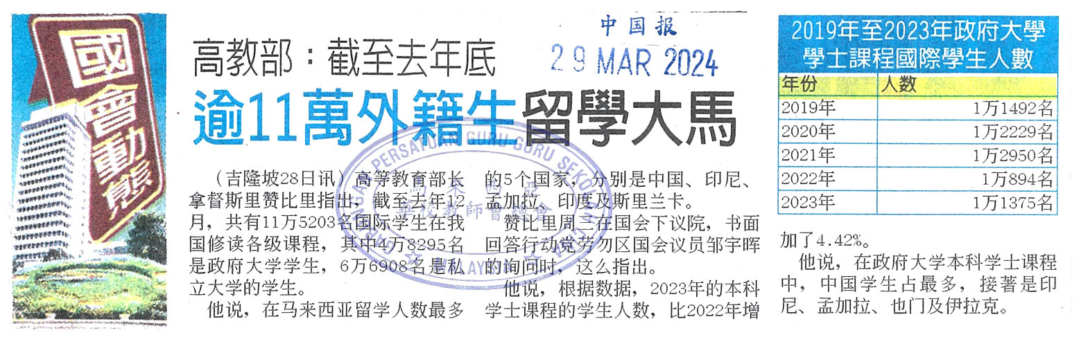 高教部:截至去年底 逾11万外籍生留学大马