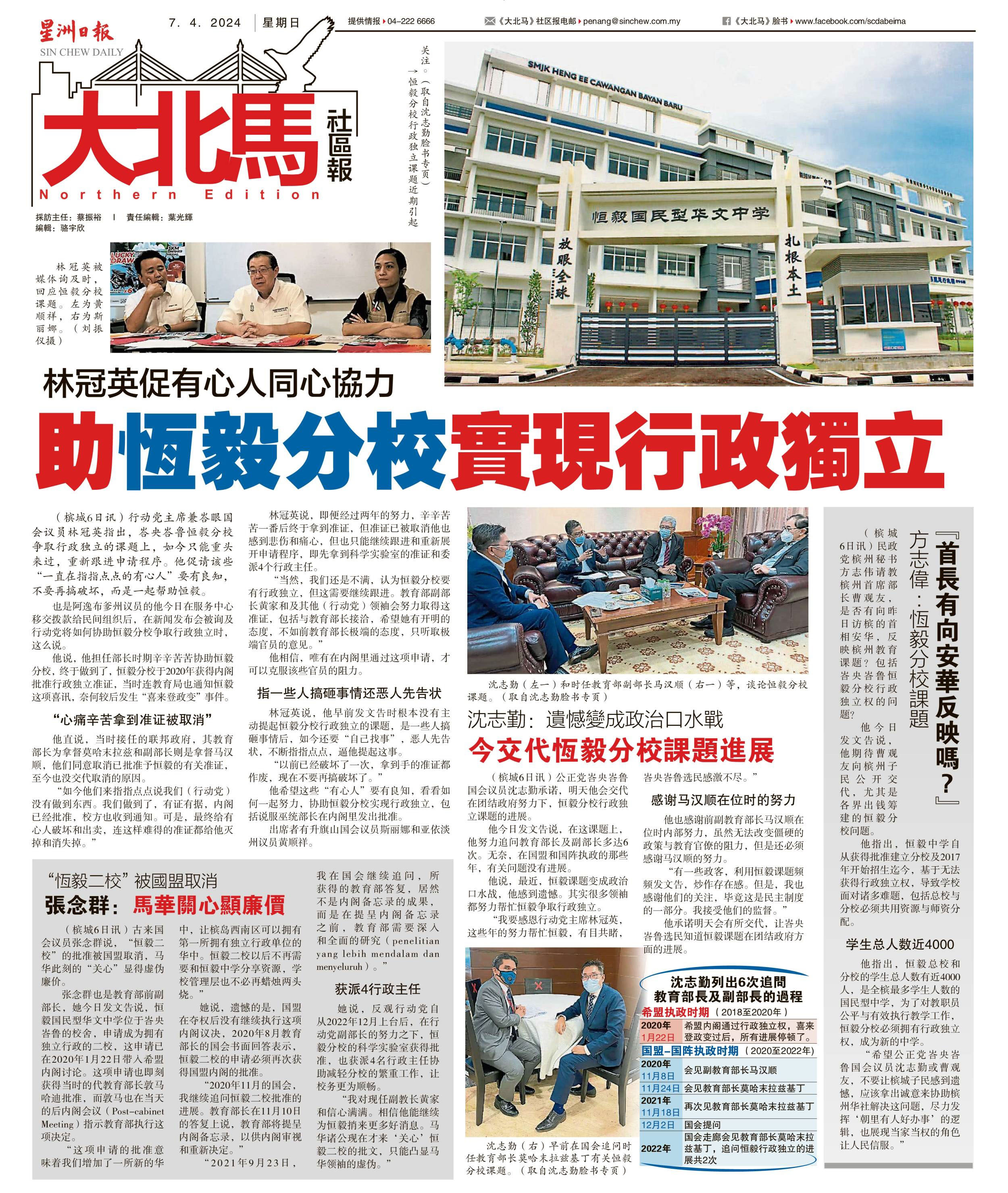 教育部维持恒毅分校现有地位新闻剪报 WhatsApp 上一篇文章: 包章文:非华裔家长意识华教具优势 将有更多土著送子女读华小 上一页 下一篇文章: 教师学士课华小组招784人 华文科仅有30名额 下一页