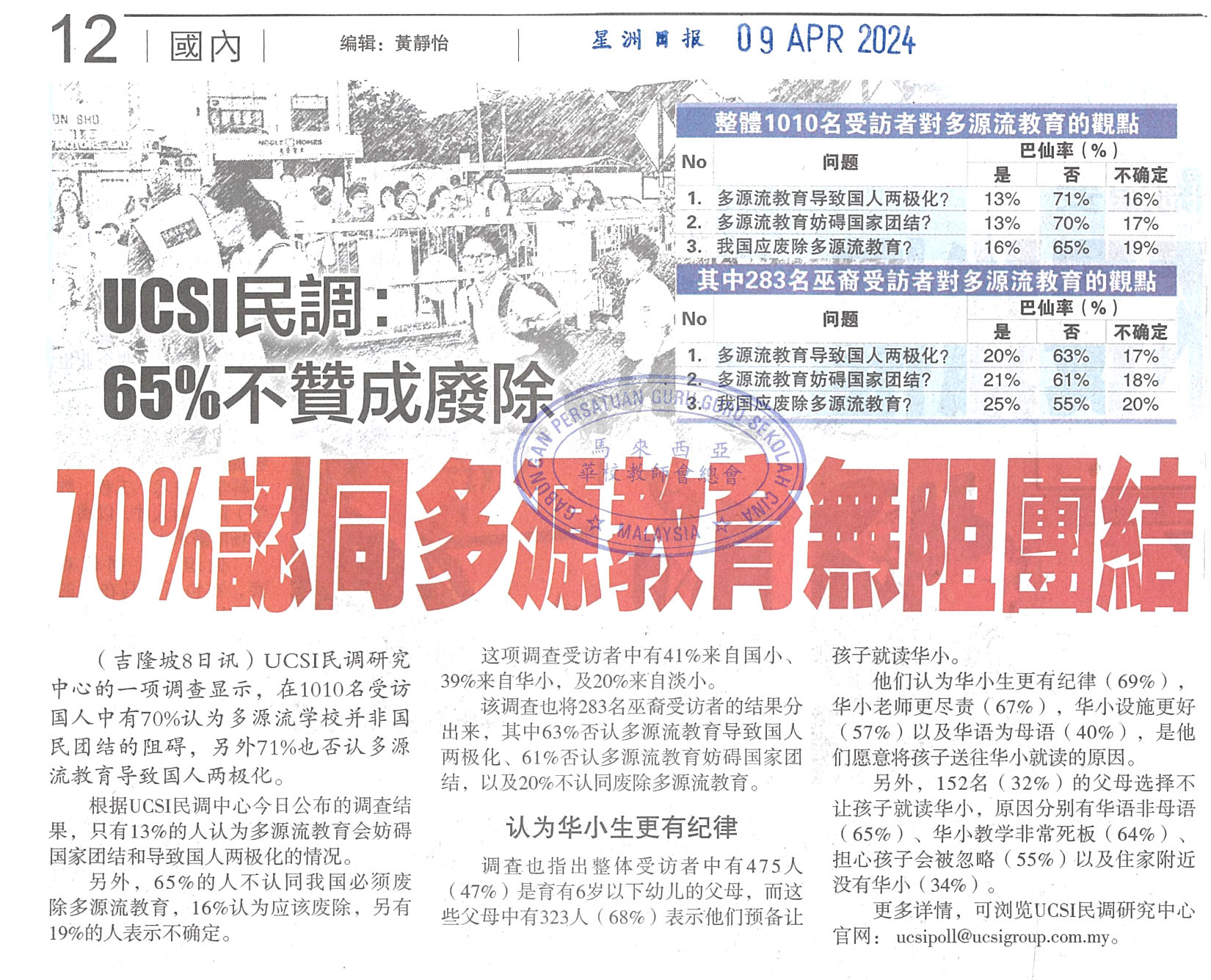 UCSI民调:65%不赞成废除  70%认同多源教育无阻团结