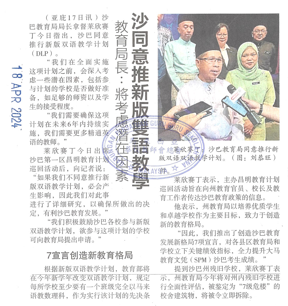 教育局长:将考虑潜在因素  沙同意推新版双语教学