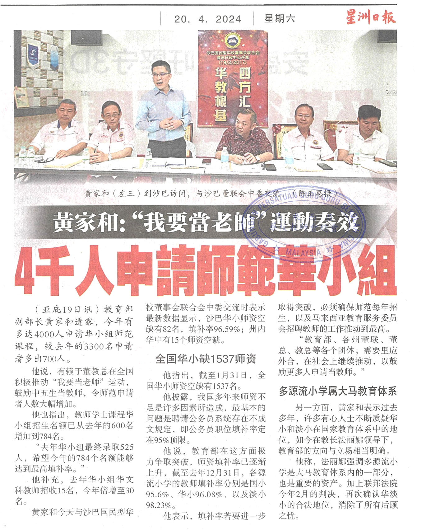 黄家和:“我要当老师”运动奏效  4千人申请师范华小组
