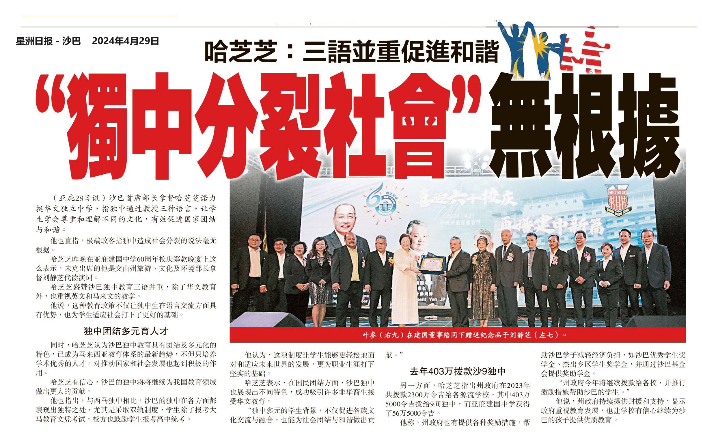 哈芝芝:三语并重促进和谐 “ 独中分裂社会”无根据