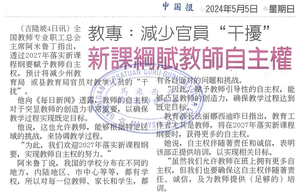 教专:减少官员“干扰”新课纲赋教师自主权