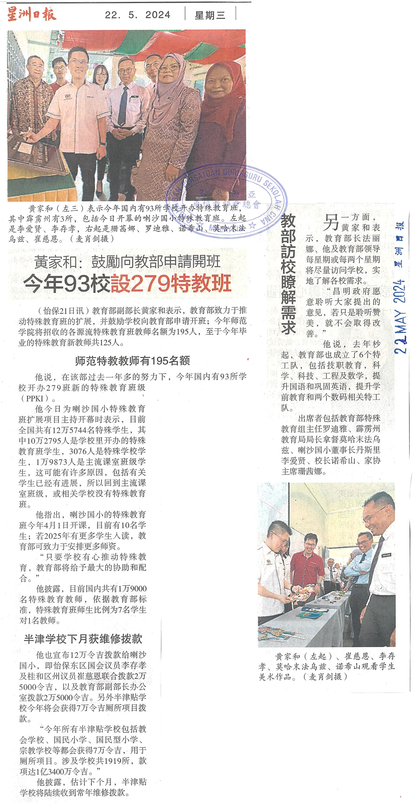 黄家和:鼓励向教部申请开班 今年93校设279特教班