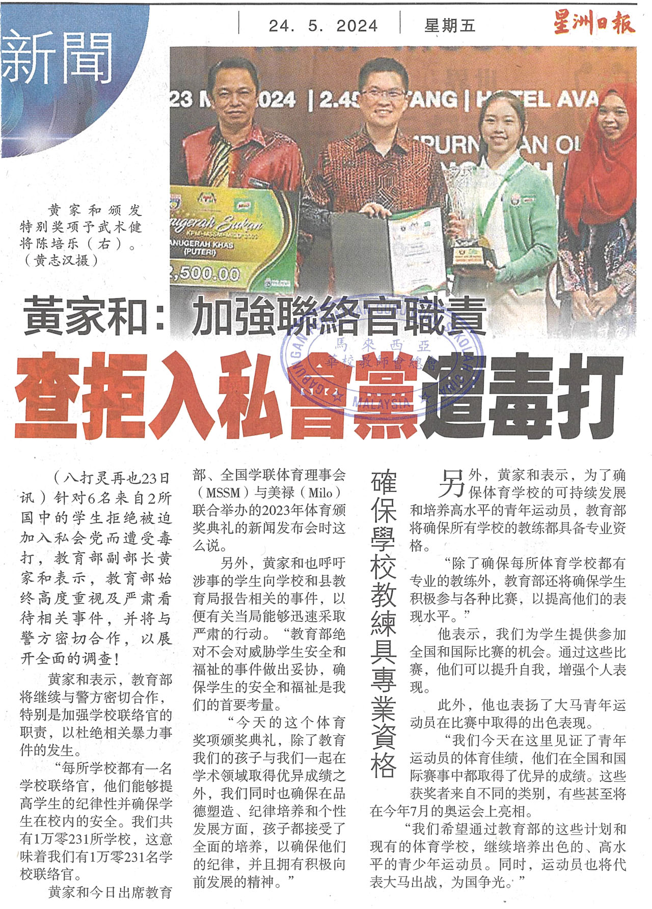 黄家和:加强联络官职责 查拒入私会党遭毒打