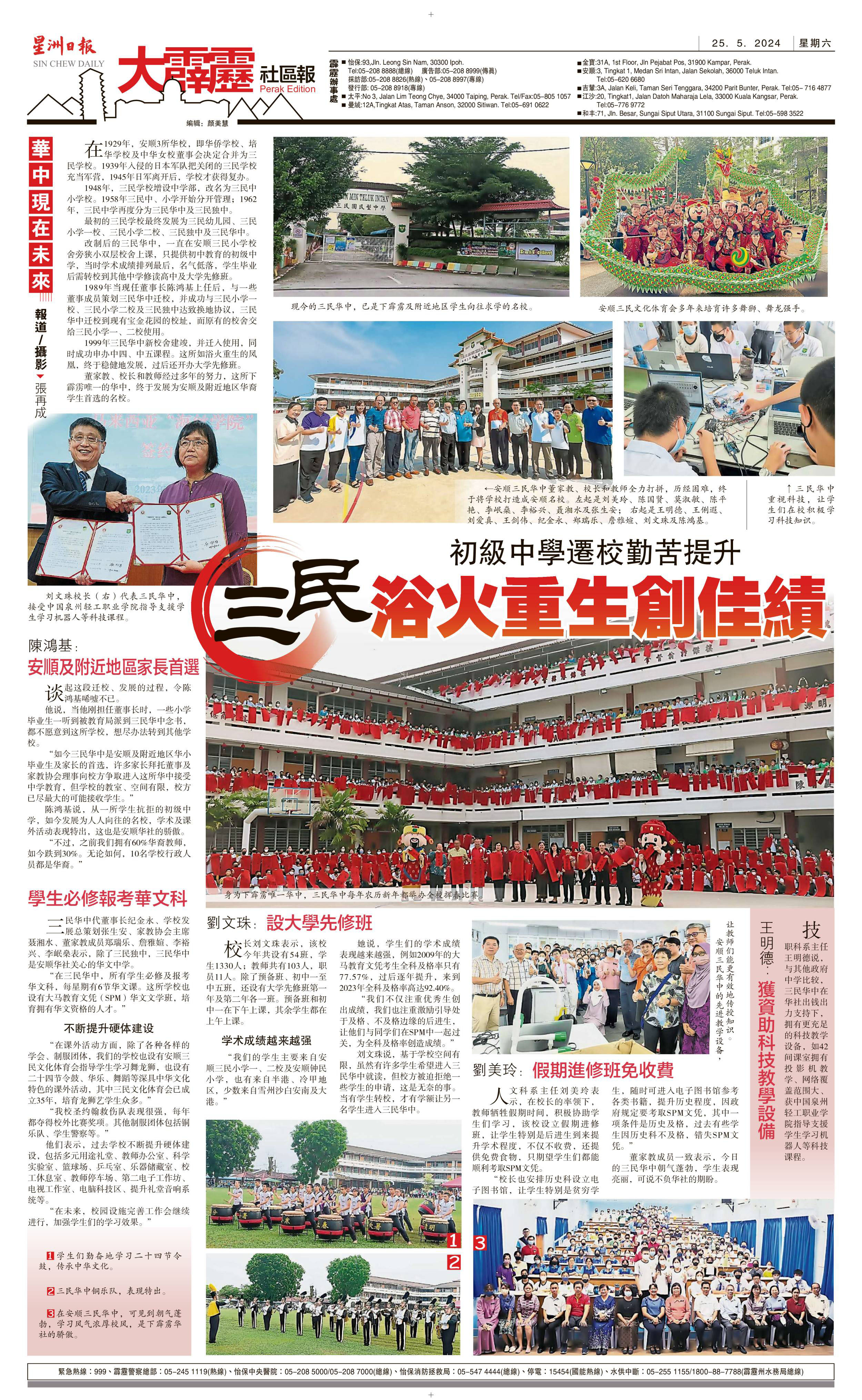 初级中学迁校勤苦提升 三民浴火重生创佳绩