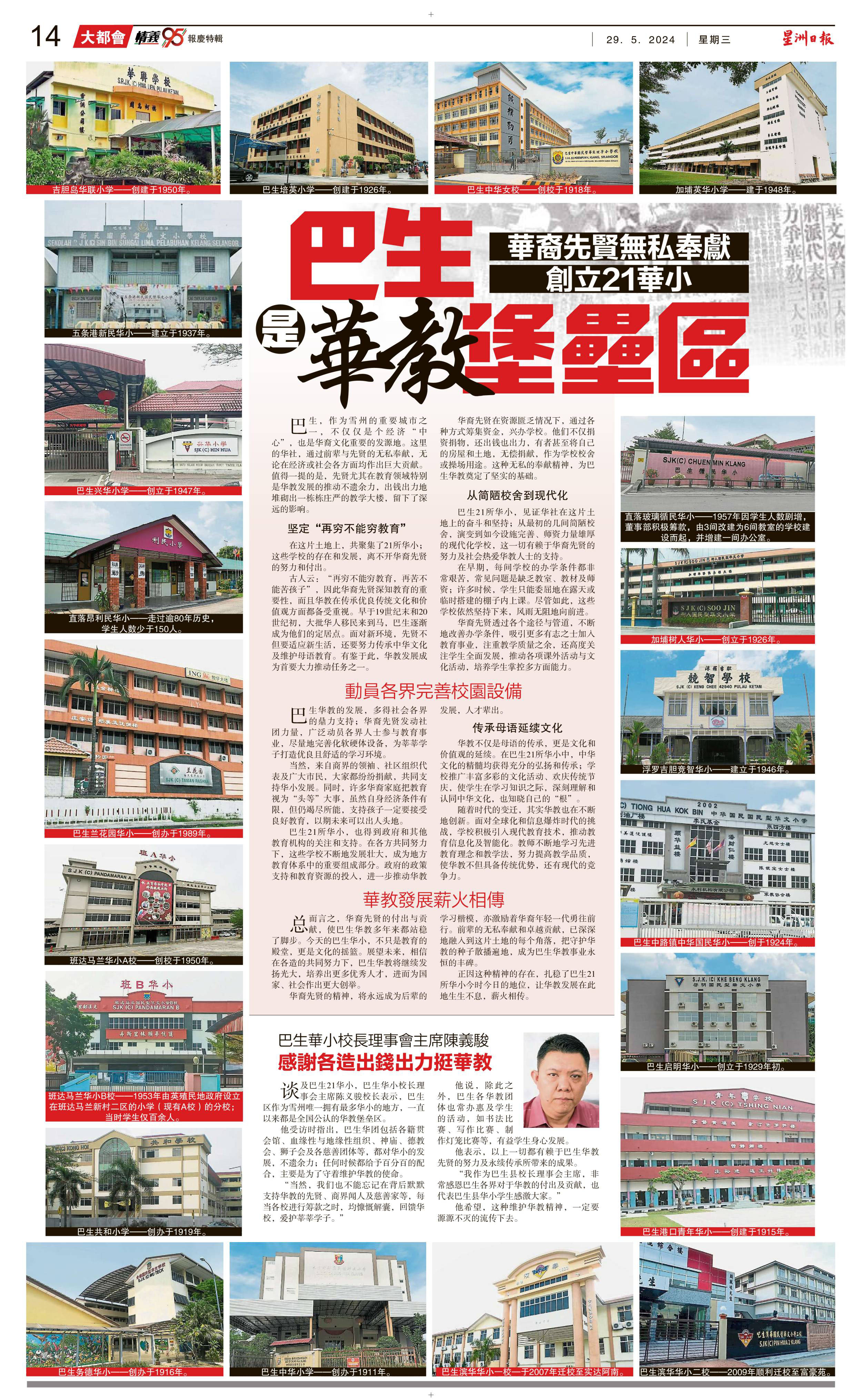 华裔先贤无私奉献 创立21华小 巴生是华教堡垒区 WhatsApp 上一篇文章: 教专:原因多包括工作退学生病 解决SPM缺考不易 上一页 下一篇文章: 利民达二校不卖煎炸高糖加工食品 营养盒饭让学生吃得健康 下一页