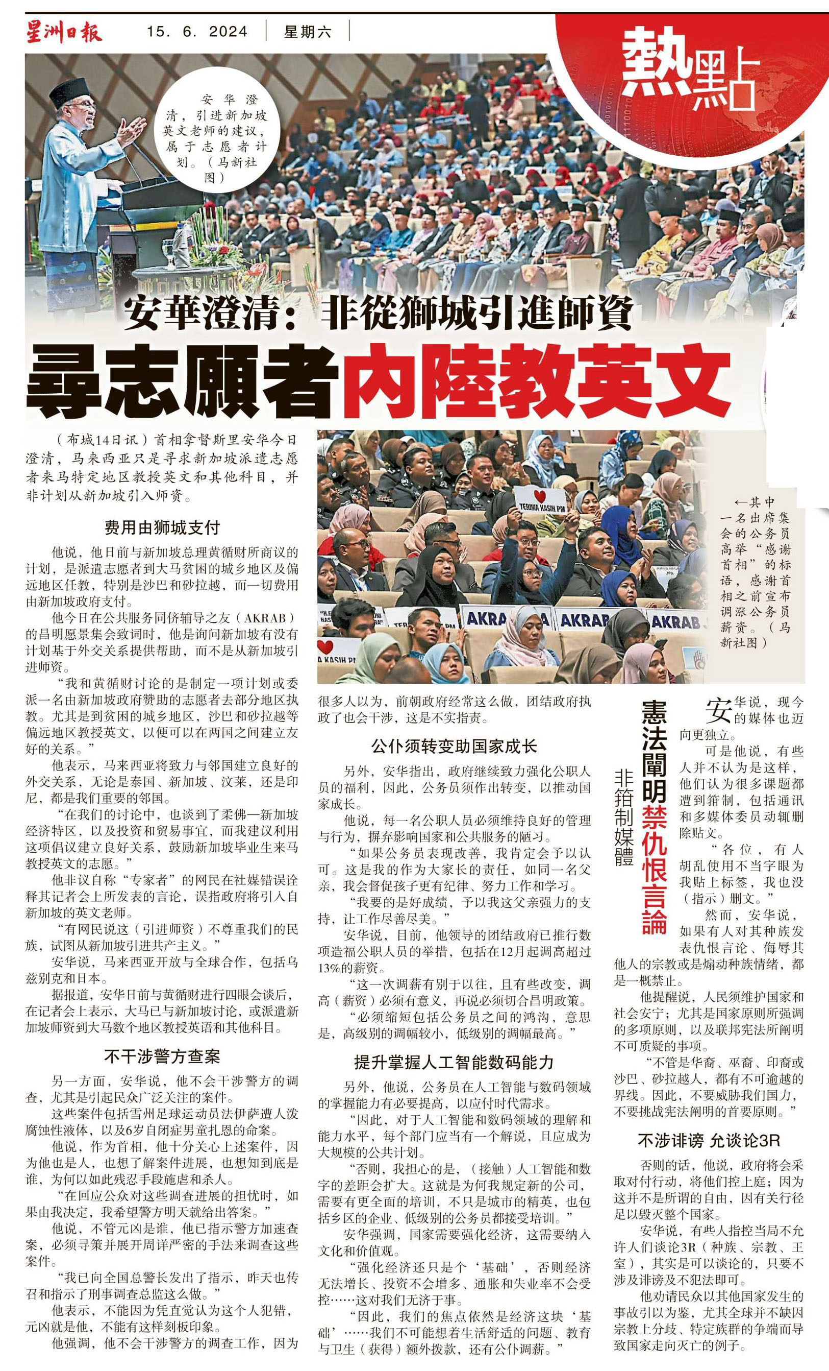 聘请新加坡英文教师来马新闻剪报