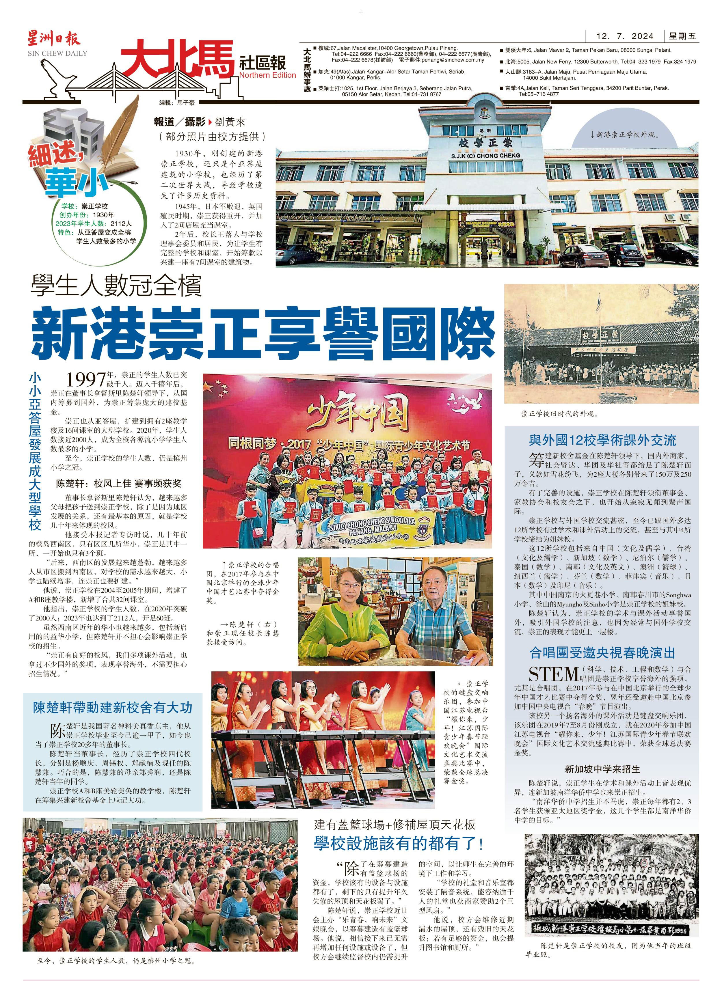 学生人数冠全槟 新港崇正享誉国际