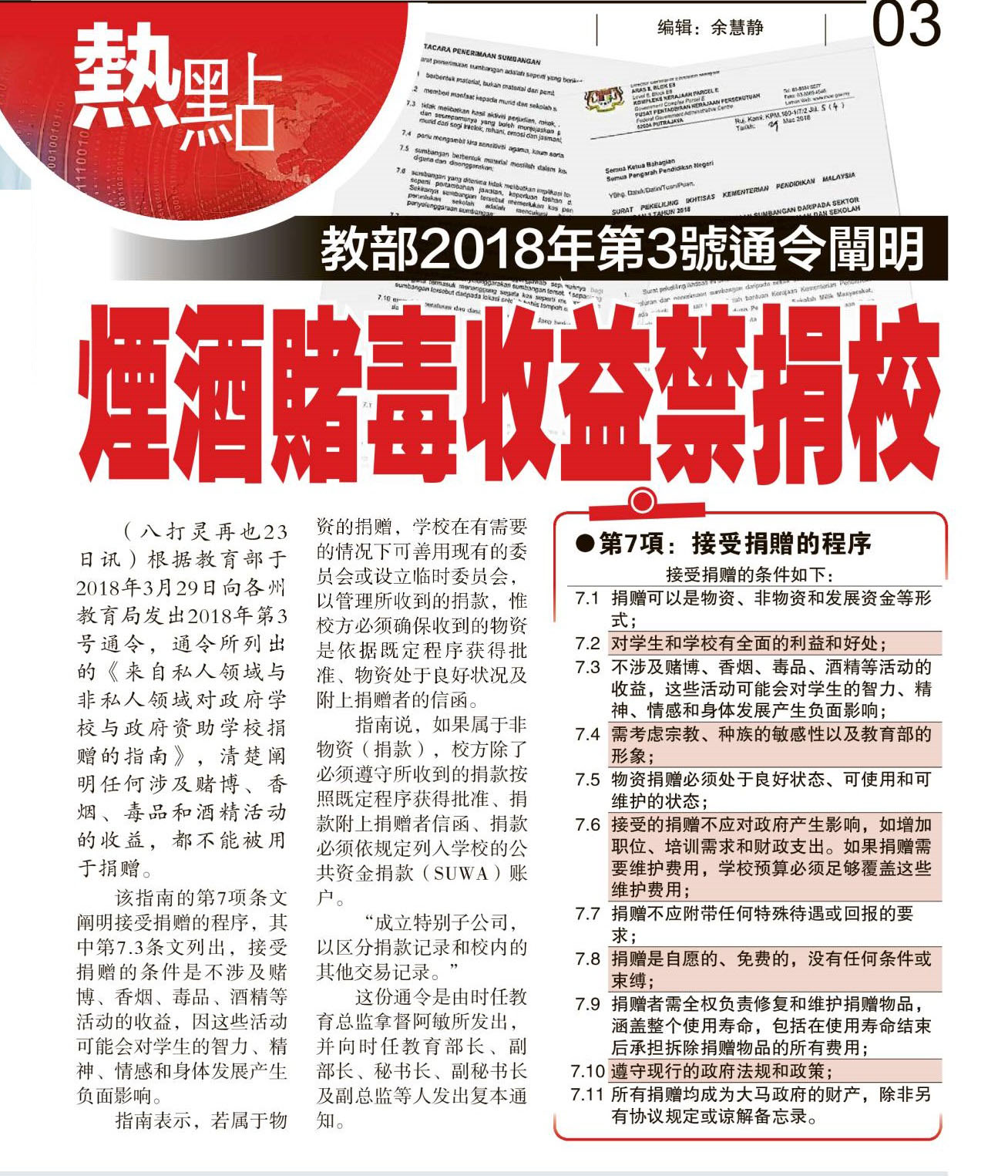 禁学校收烟酒赌业捐款课题剪报