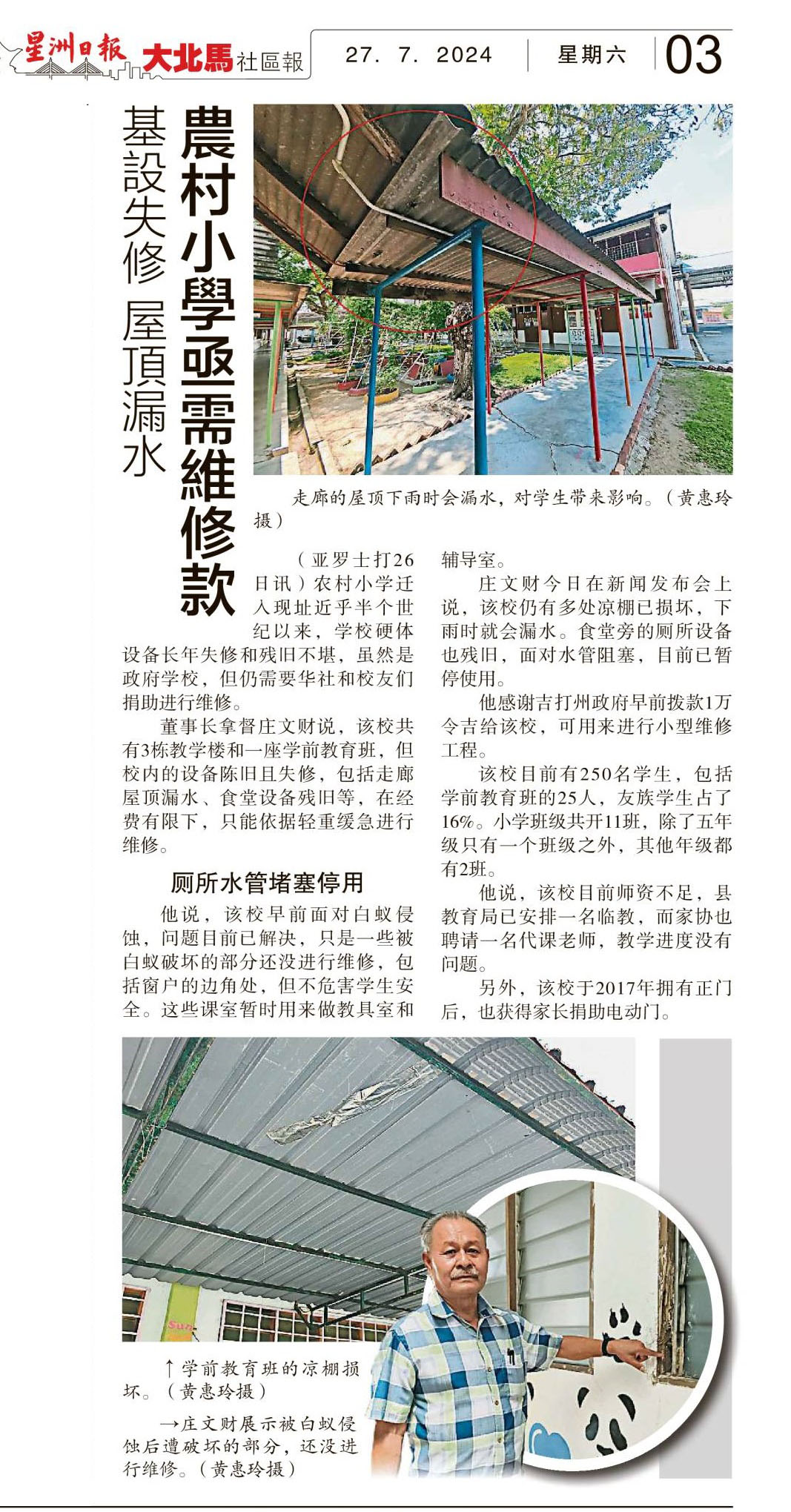 基设失修 屋顶漏水 农村小学亟需维修款