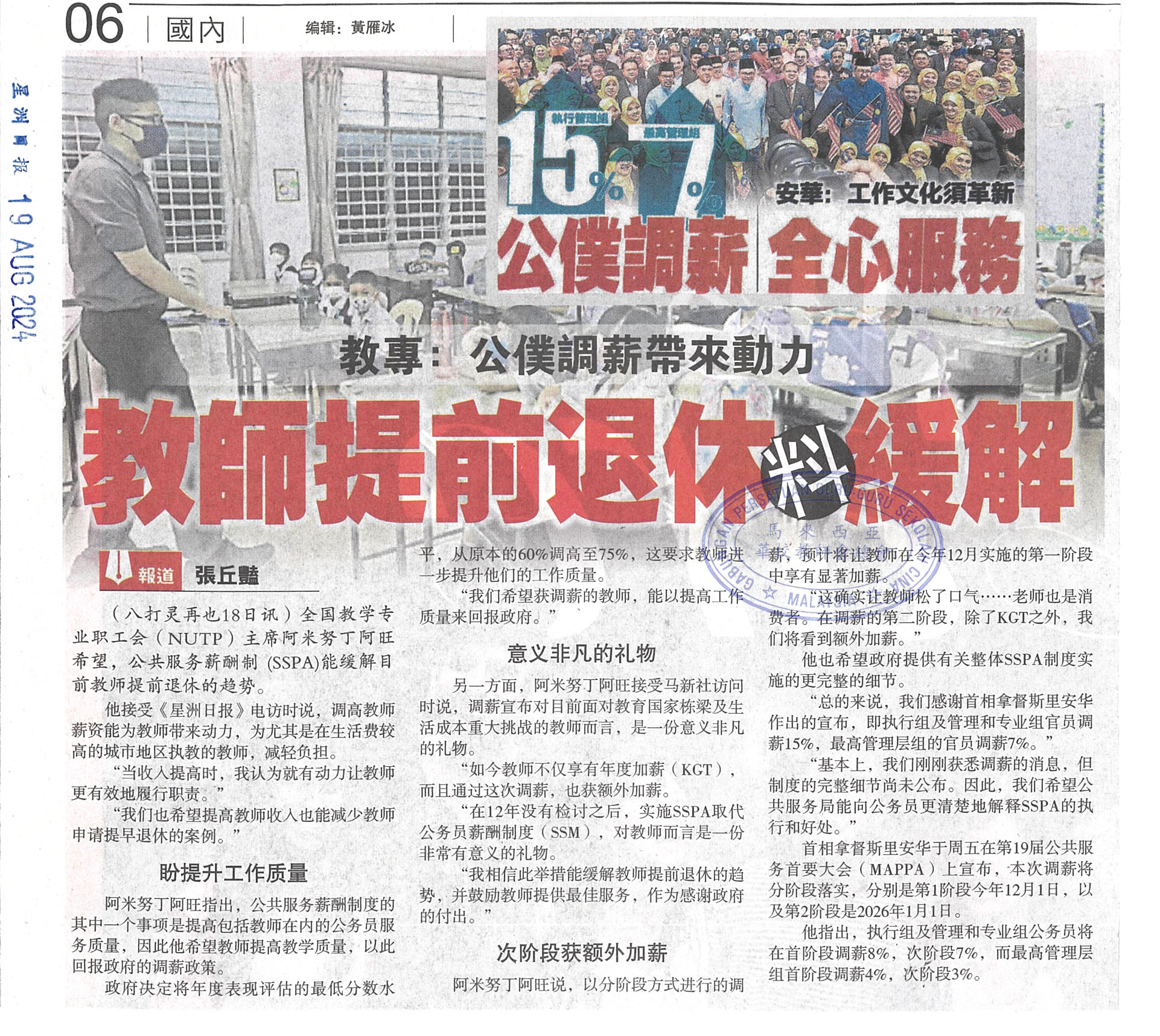 教专:公仆调薪带来动力 教师提前退休料缓解 WhatsApp 上一篇文章: 历时16年艰难建校过程 班丹中华华小近落成 上一页 下一篇文章: 武吉英达培才华小建校舍 缺300万将向首相署申请拨款 下一页