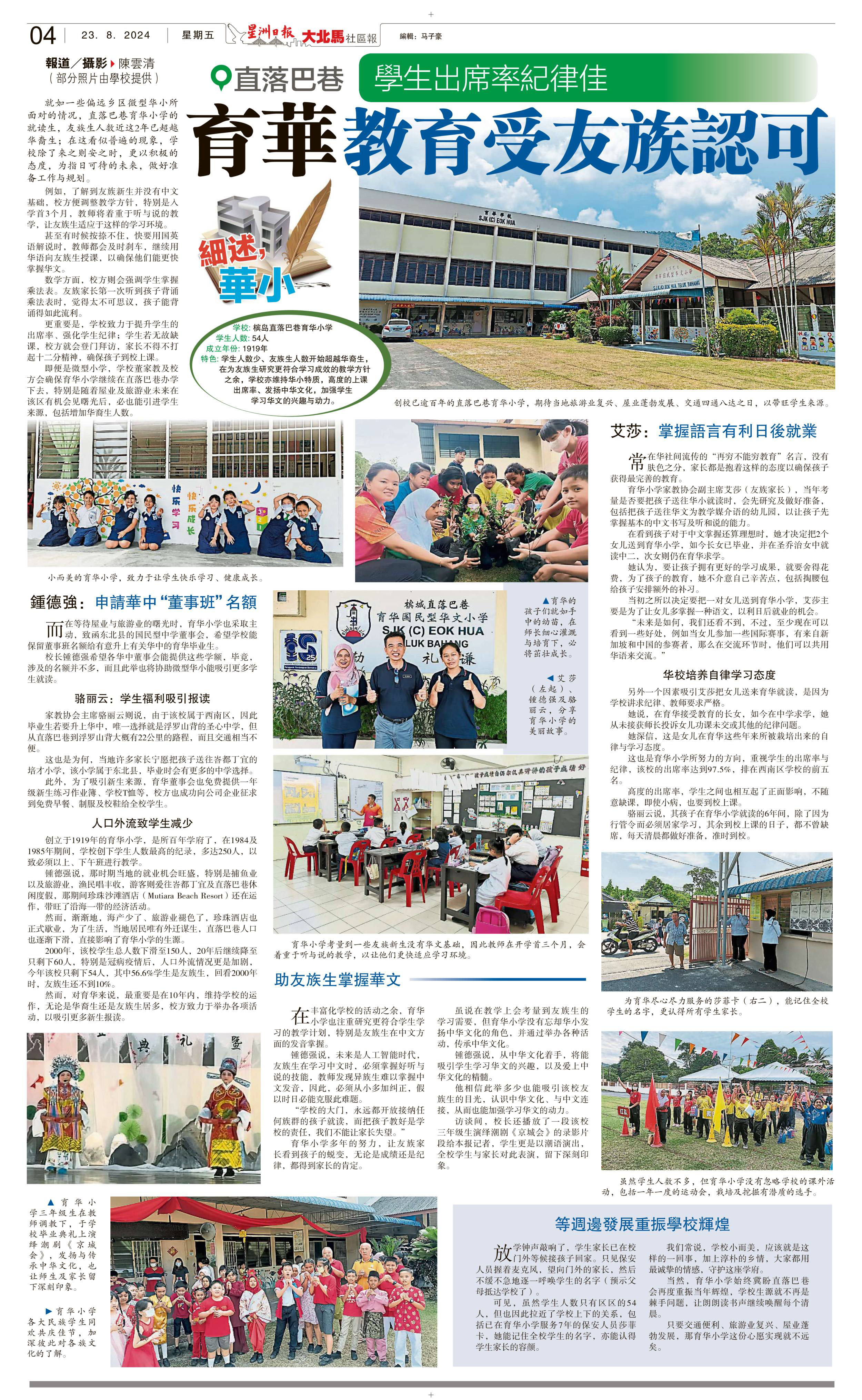学生出席率纪律佳 直落巴巷育华小学受友族认可