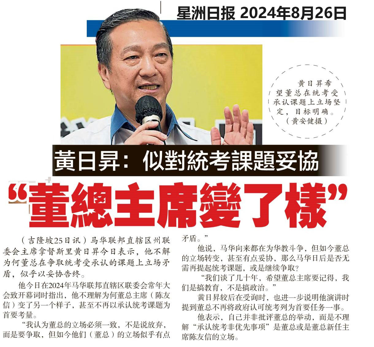 黄日昇:似对统考课题妥协 “董总主席变了样”
