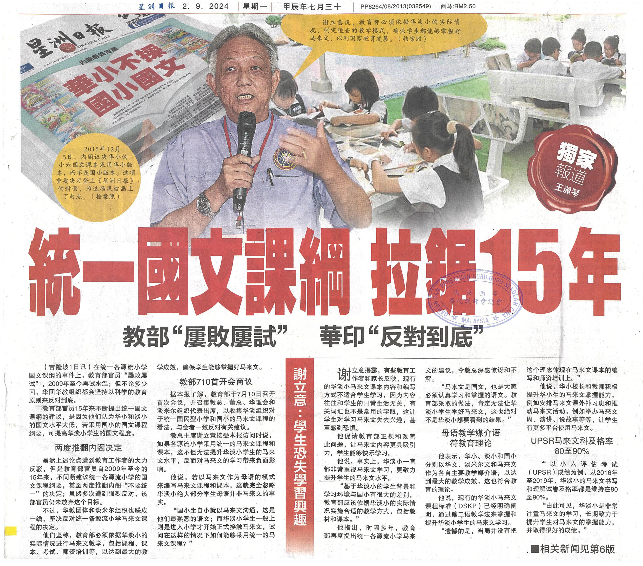 教育部统一各源流小学马来文课程新闻剪报