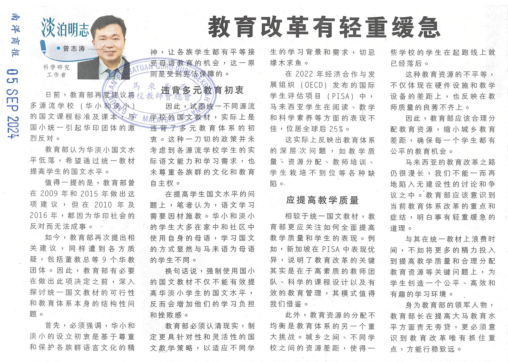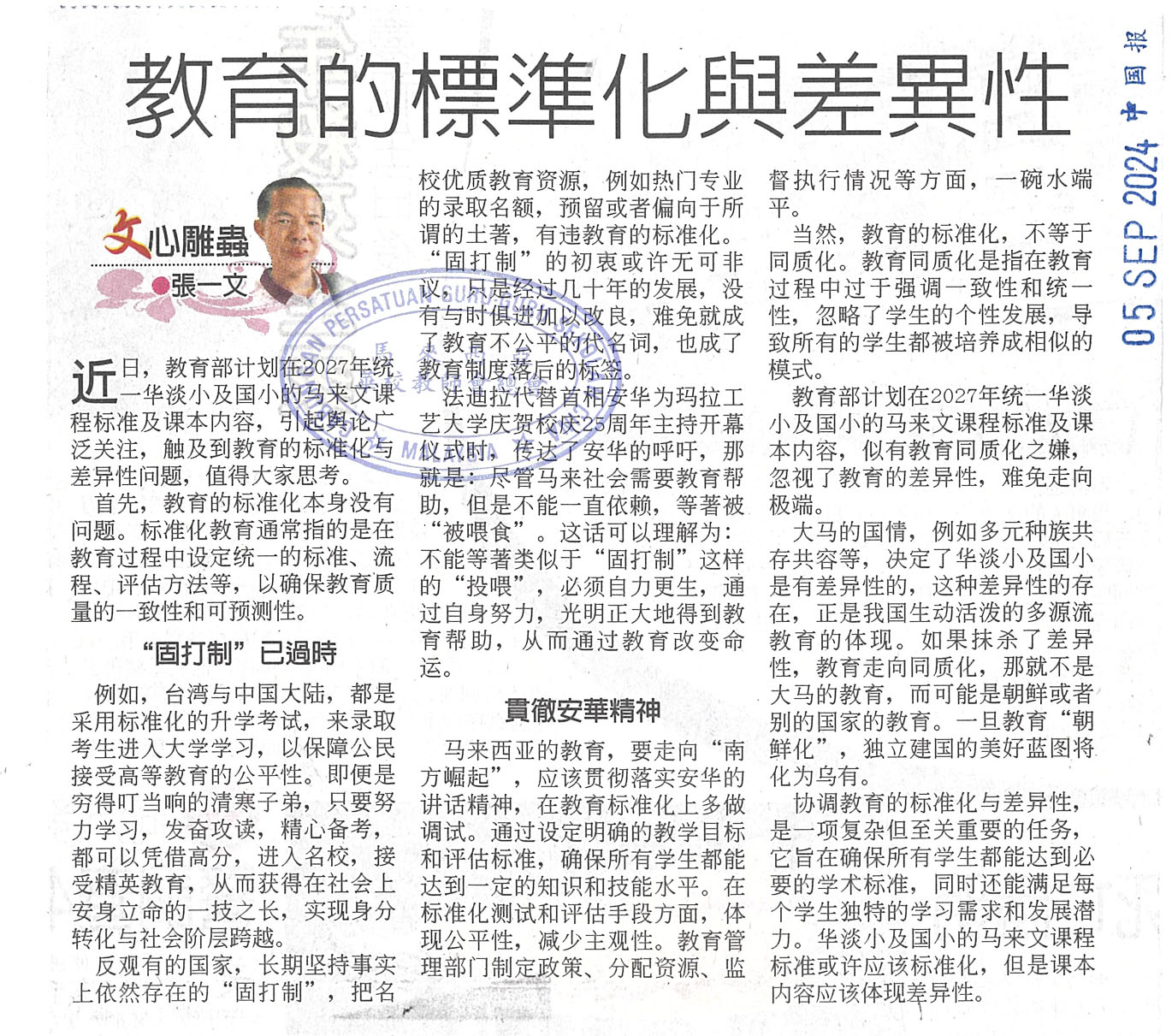 教育部统一各源流小学马来文课程新闻剪报
