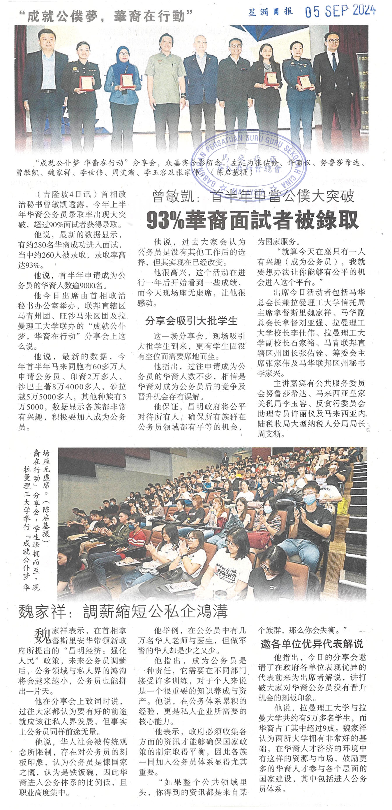 曾敏凯:首半年申当公仆大突破   93%华裔面试者被录取