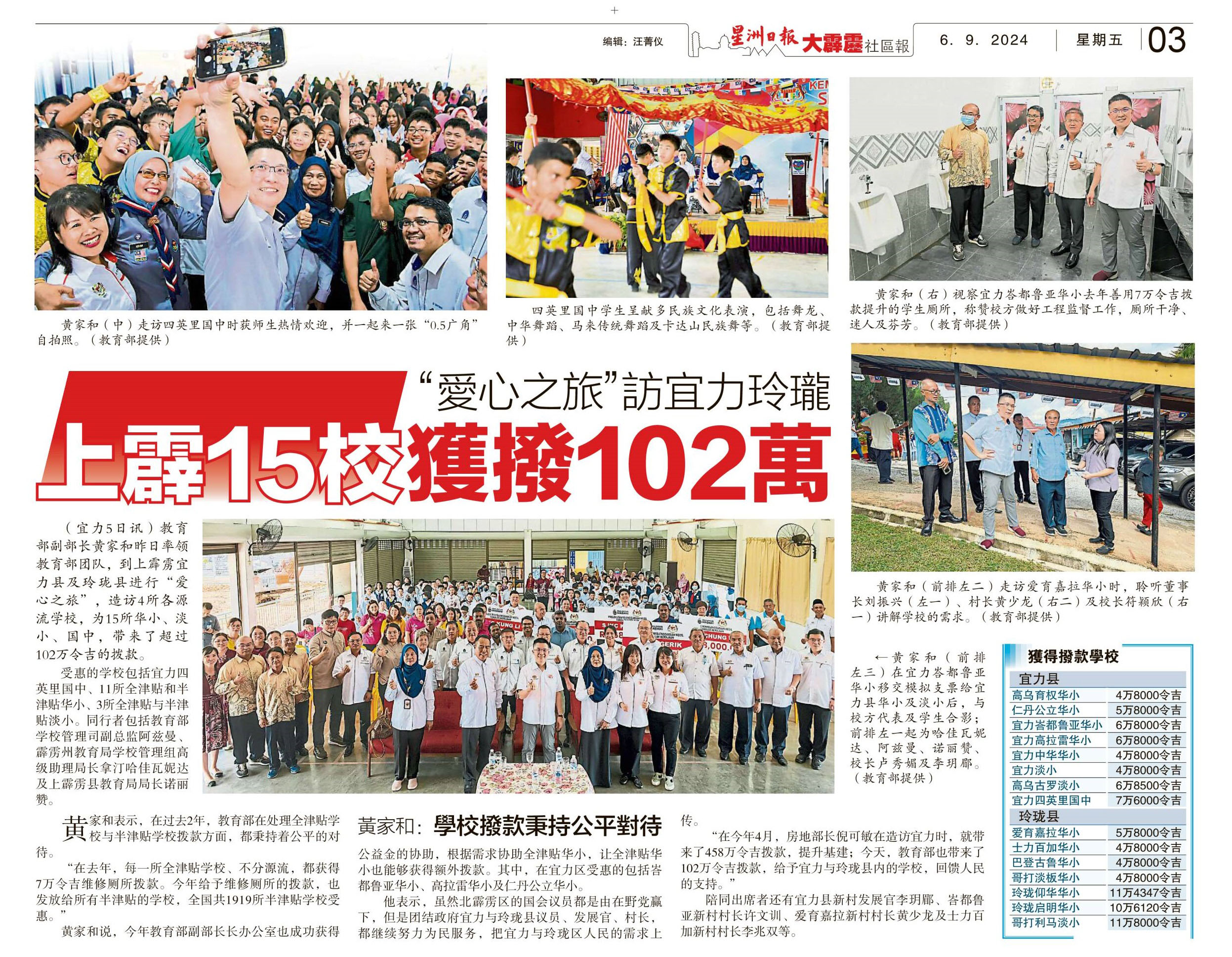 “爱心之旅”访宜力玲珑 上霹15校获拨102万