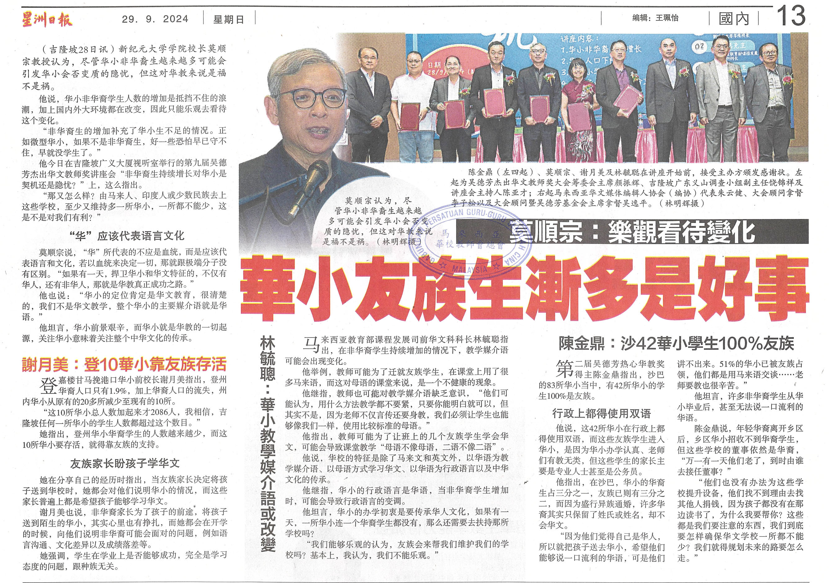 莫顺宗:乐观看待变化 华小友族生渐多是好事