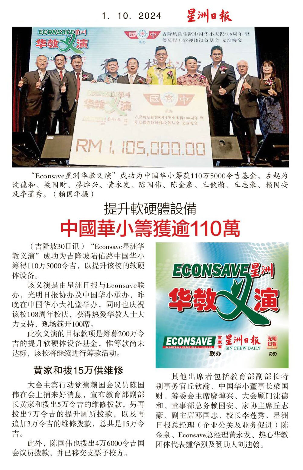 提升软硬体设备 中国华小筹获逾110万