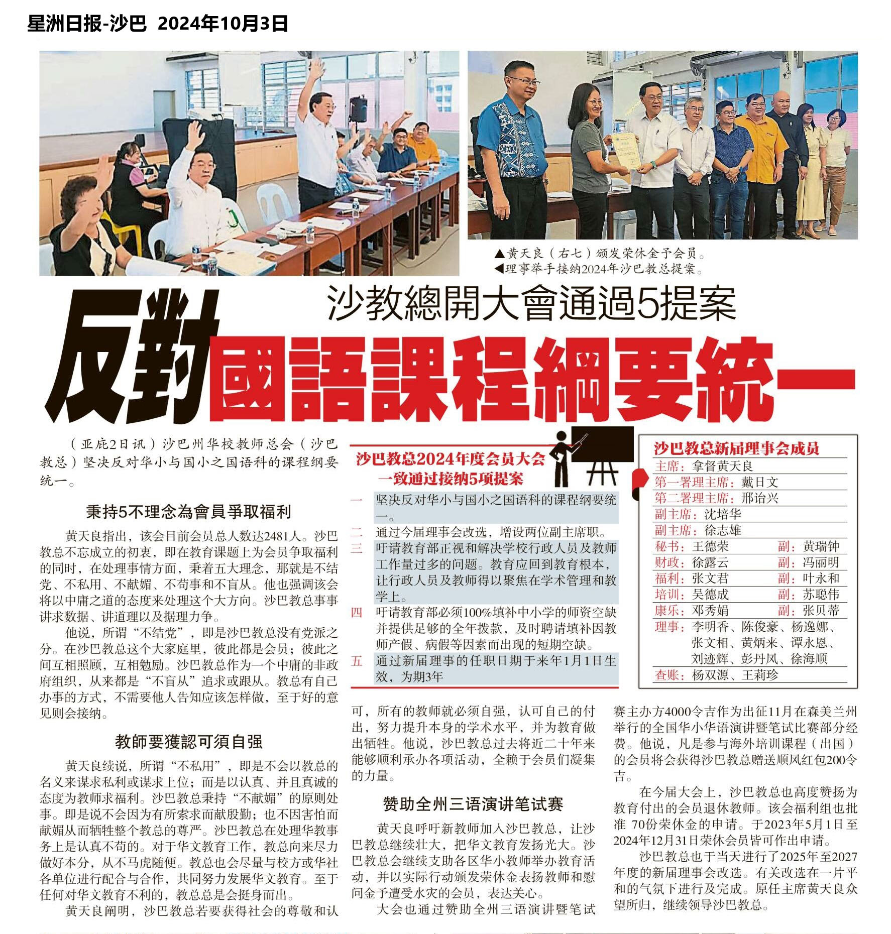 沙教总开大会通过5提案 反对国语课程纲要统一