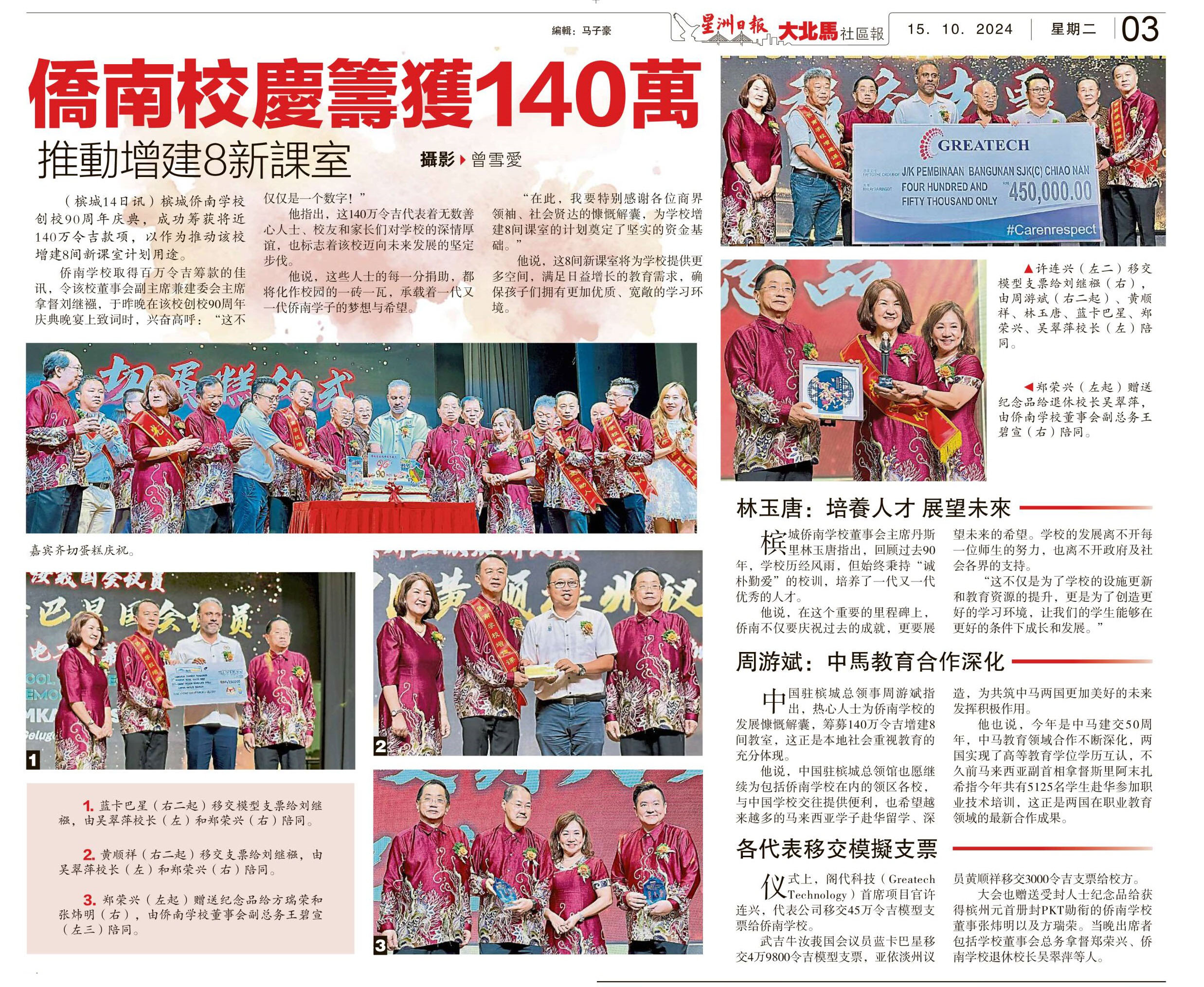 槟城侨南校庆筹获140万 推动增建8新课室