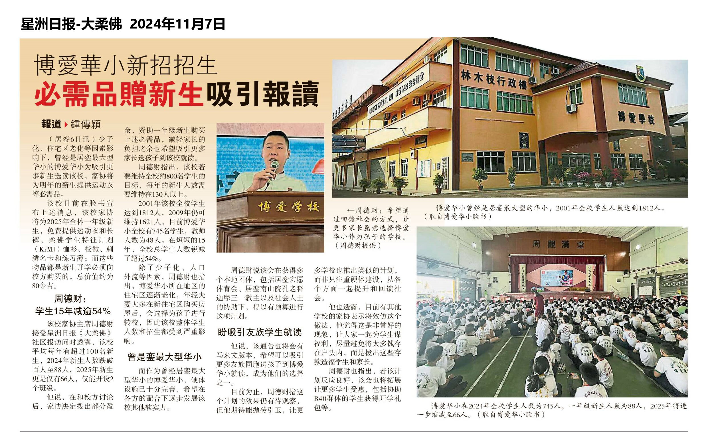 博爱华小新招招生 必需品赠新生吸引报读 WhatsApp 上一篇文章: 教育部首颁“昌明教育机构质量奖” 培养全国唯一获奖华小 上一页 下一篇文章: 黄家和:在学校被逮到 逾1.2万学生吸电子烟 下一页
