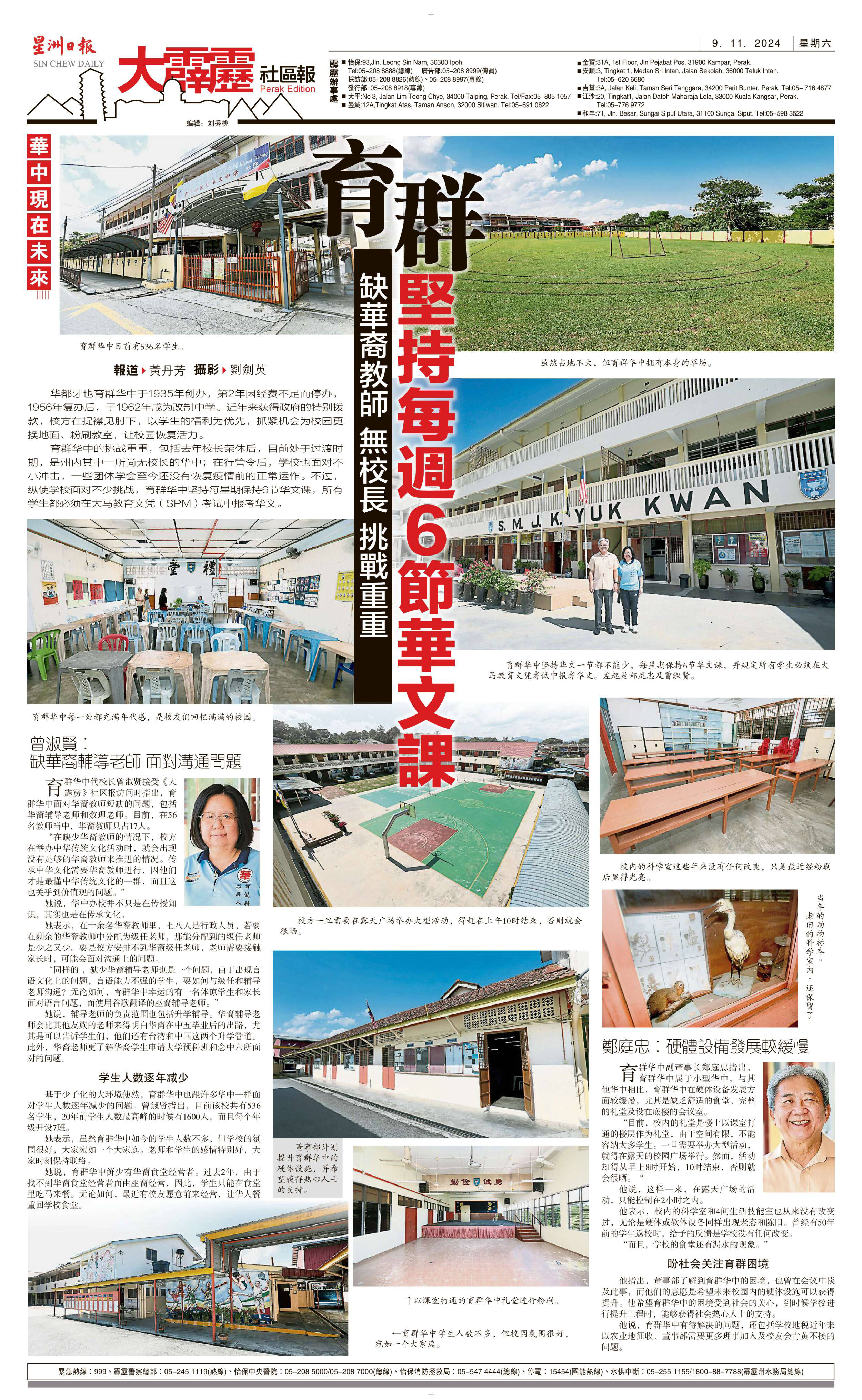 育群缺华裔教师 无校长 挑战重重  坚持每周6节华文课