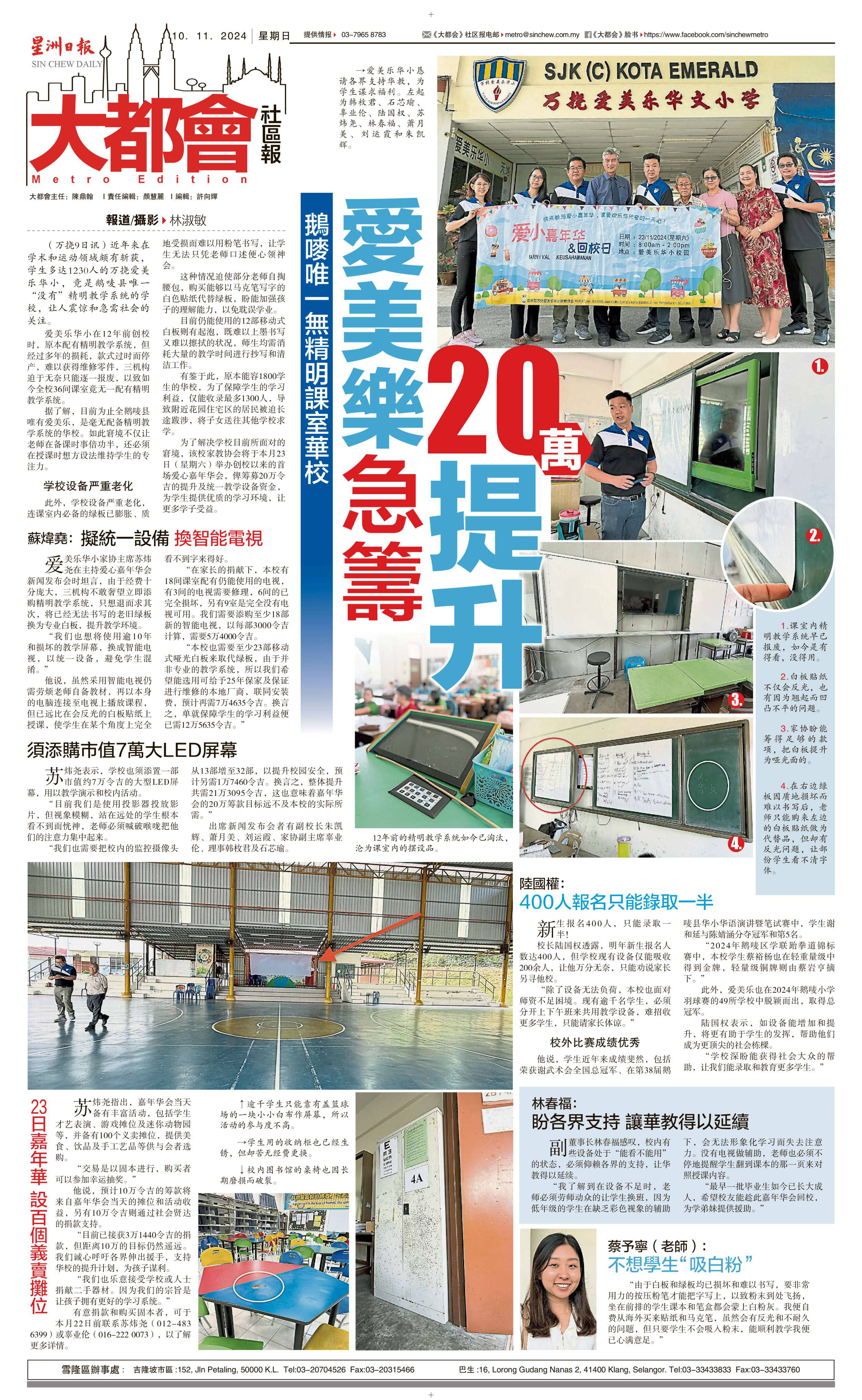鹅唛唯一无精明课室华校 爱美乐急筹20万提升
