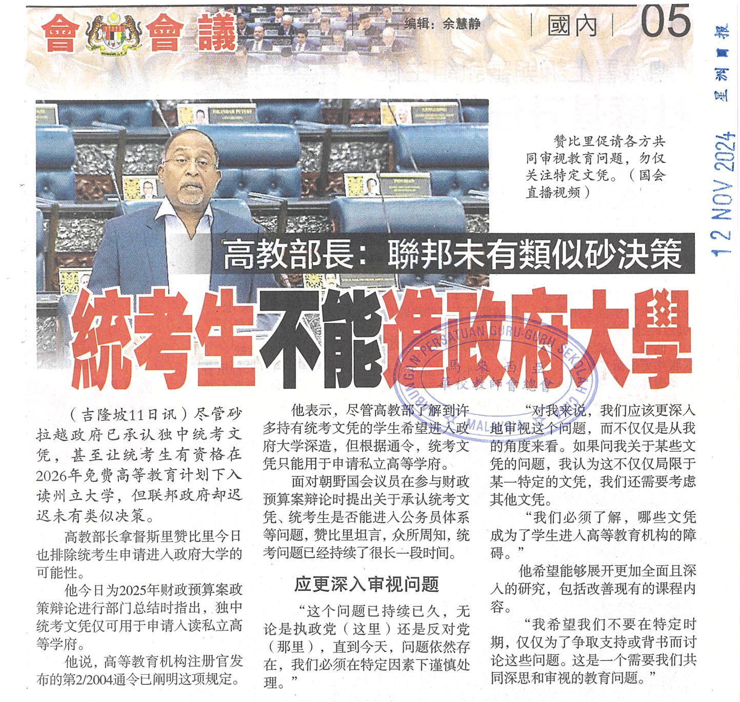 高教部长:联邦未有类似砂决策 统考生不能进政府大学 WhatsApp 上一篇文章: 魏家祥:国会无数次提问“失望教长不答华教课题” 上一页 下一篇文章: 教长:教部不U转 不恢复UPSR和PT3 下一页