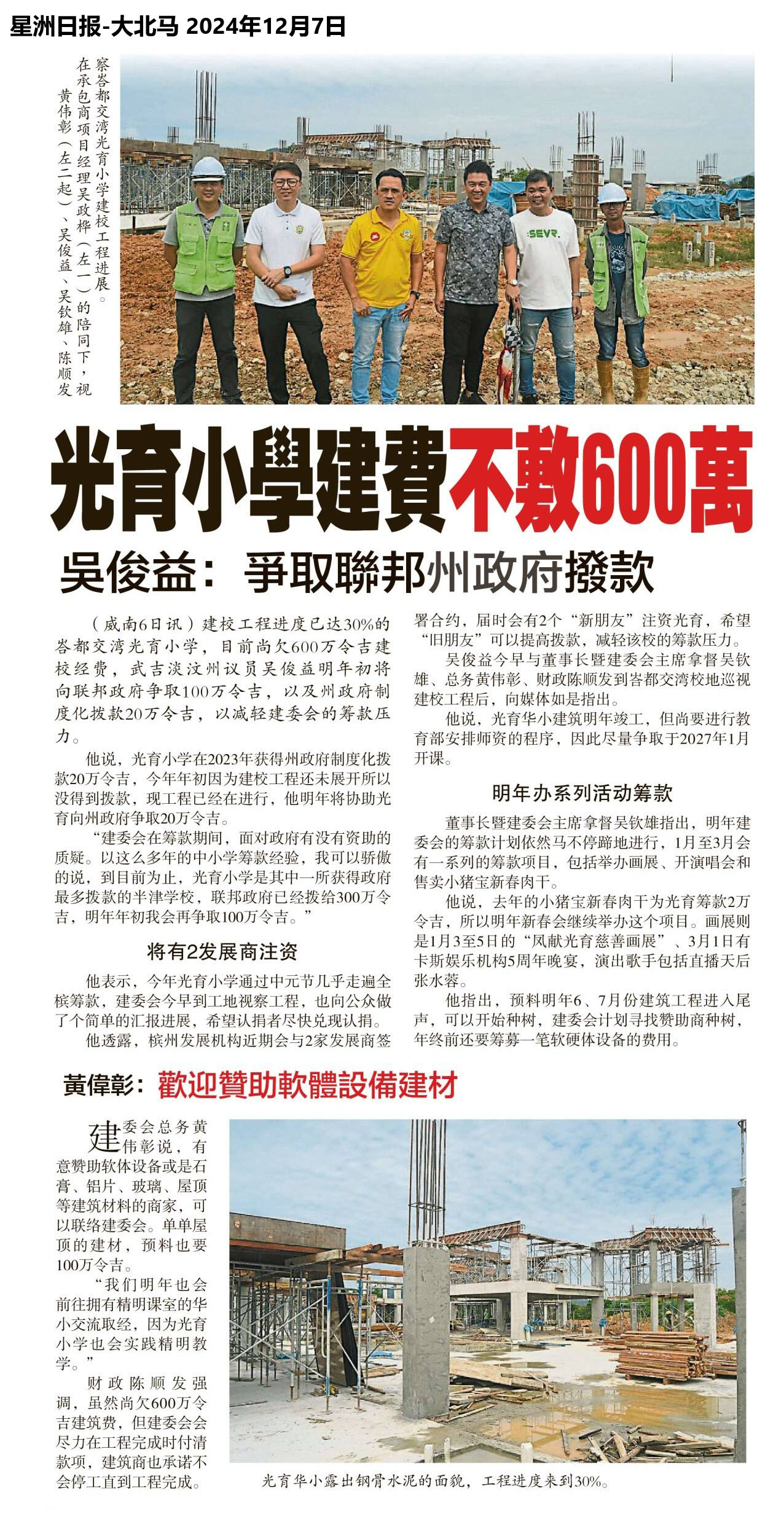 光育小学建费不敷600万 吴俊益:争取联邦州政府拨款 WhatsApp 上一篇文章: 雪政府发放教育拨款115华小4独中获800万 上一页 下一篇文章: 649小学589中学1238校采用双班制 下一页