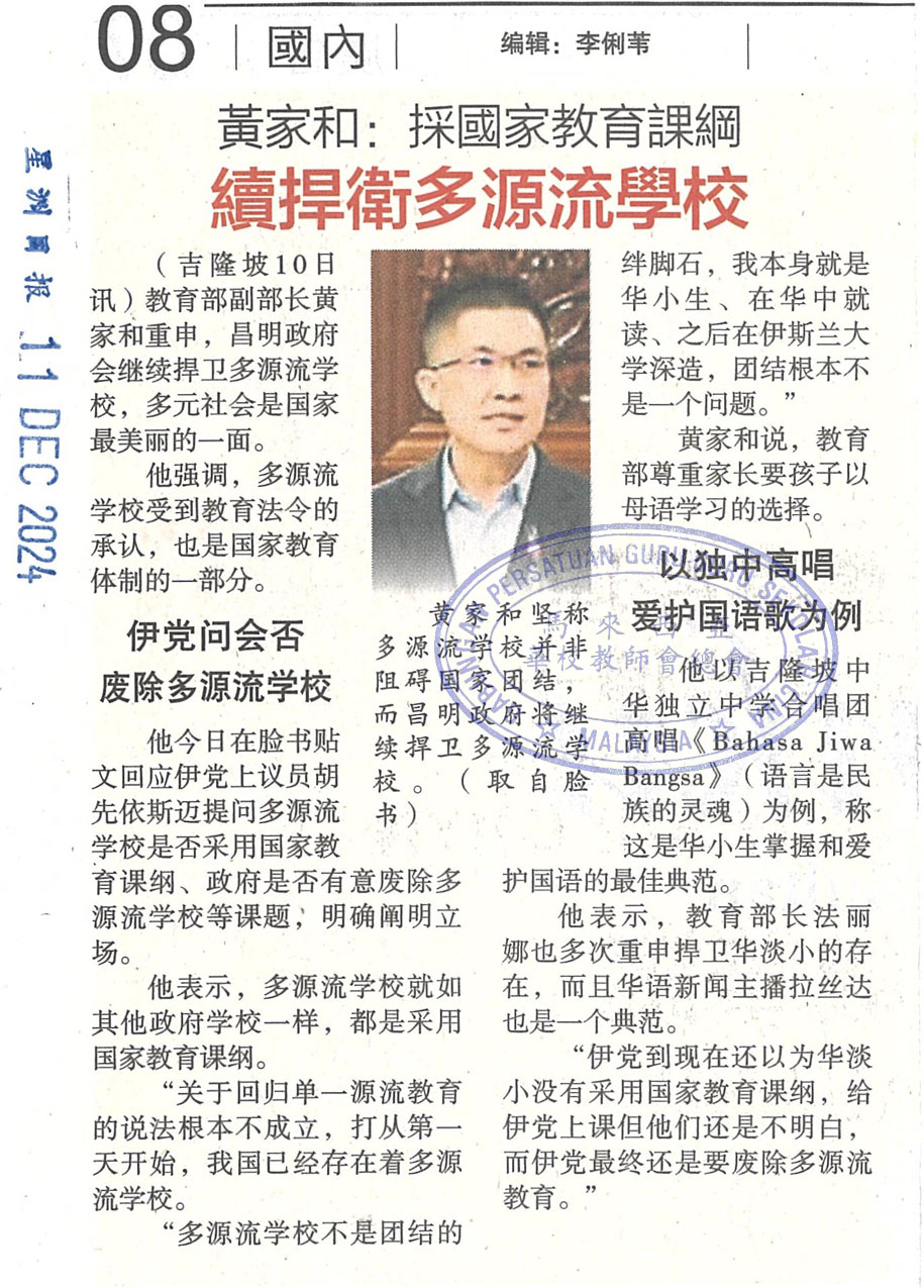 黄家和:采国家教育课纲  续捍卫多源流学校