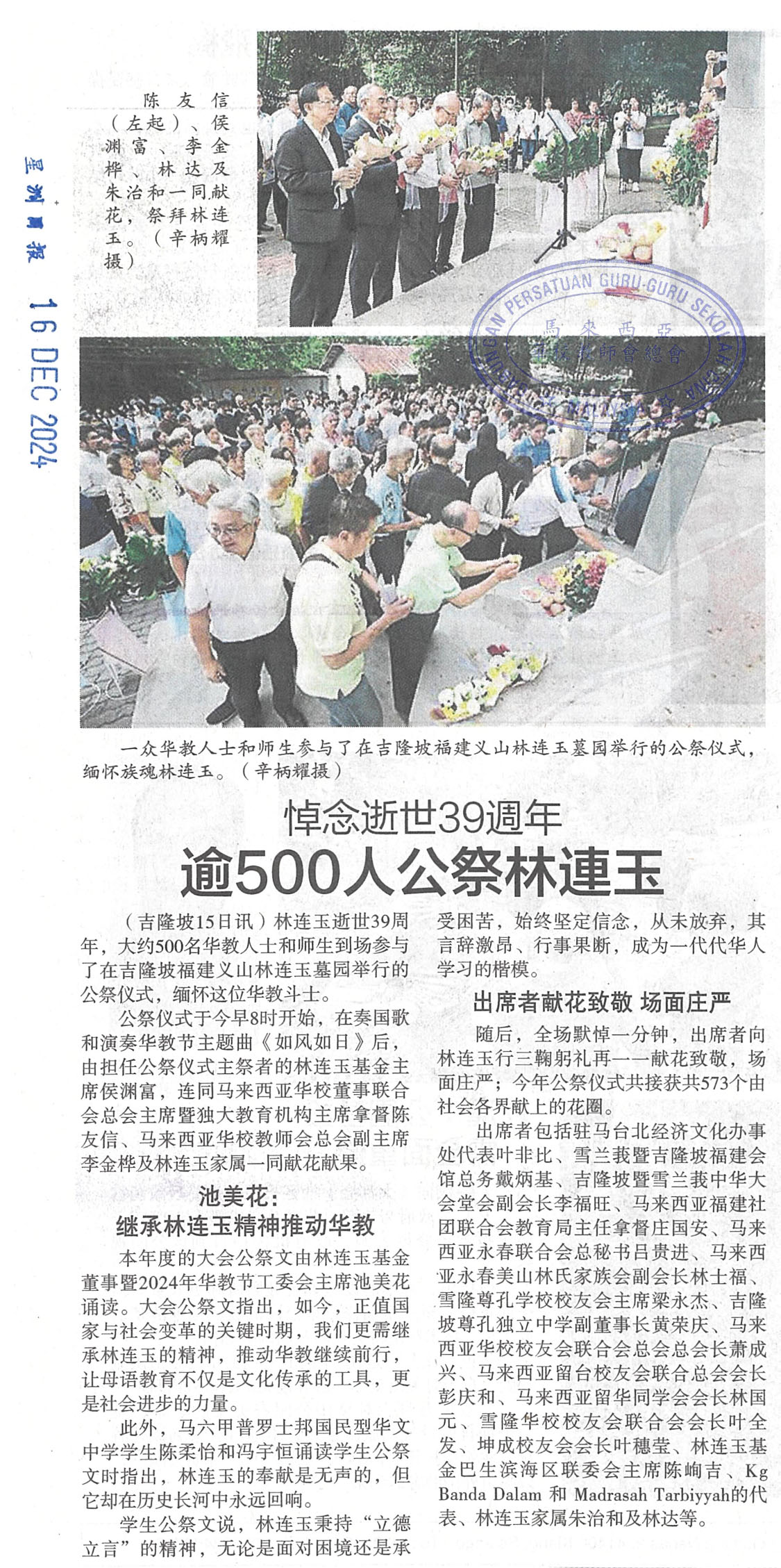 悼念逝世39周年 逾500人公祭林连玉