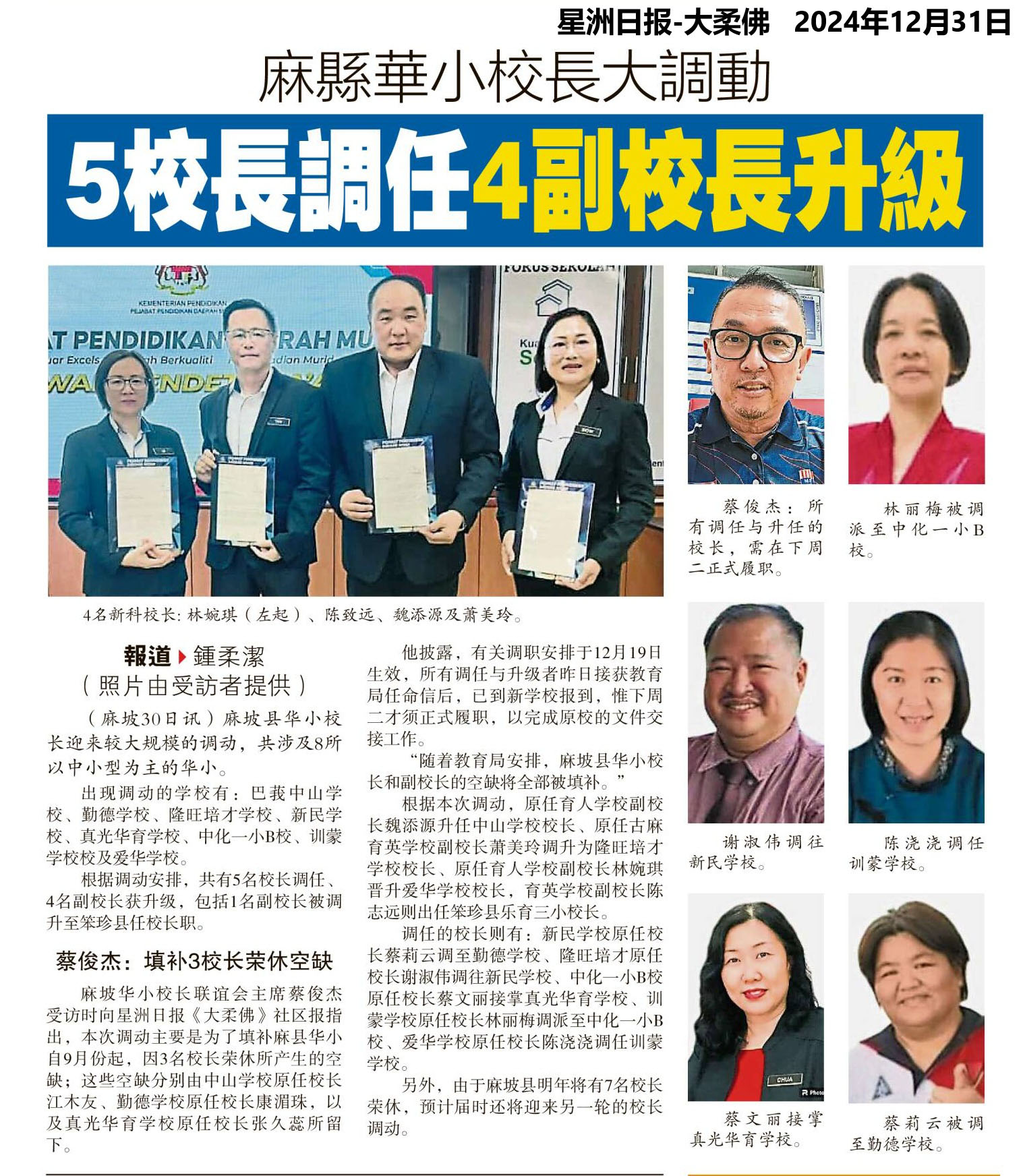 麻县华小校长大调动 5校长调任4副校长升级