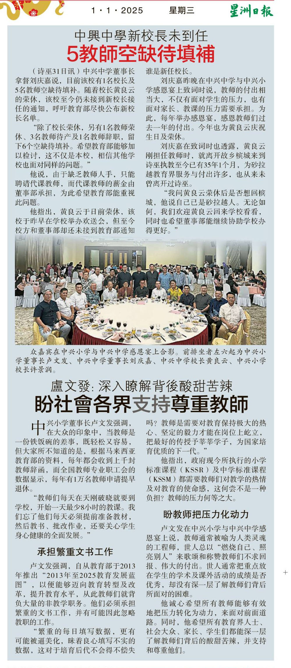 中兴中学新校长未到任 5教师空缺待填补 WhatsApp 上一篇文章: 亲手移交 料各30万 首相111拨款槟城独中 上一页 下一篇文章: 教育局长:通过面试 部署调遣 砂逾1500新教师1月执教 下一页