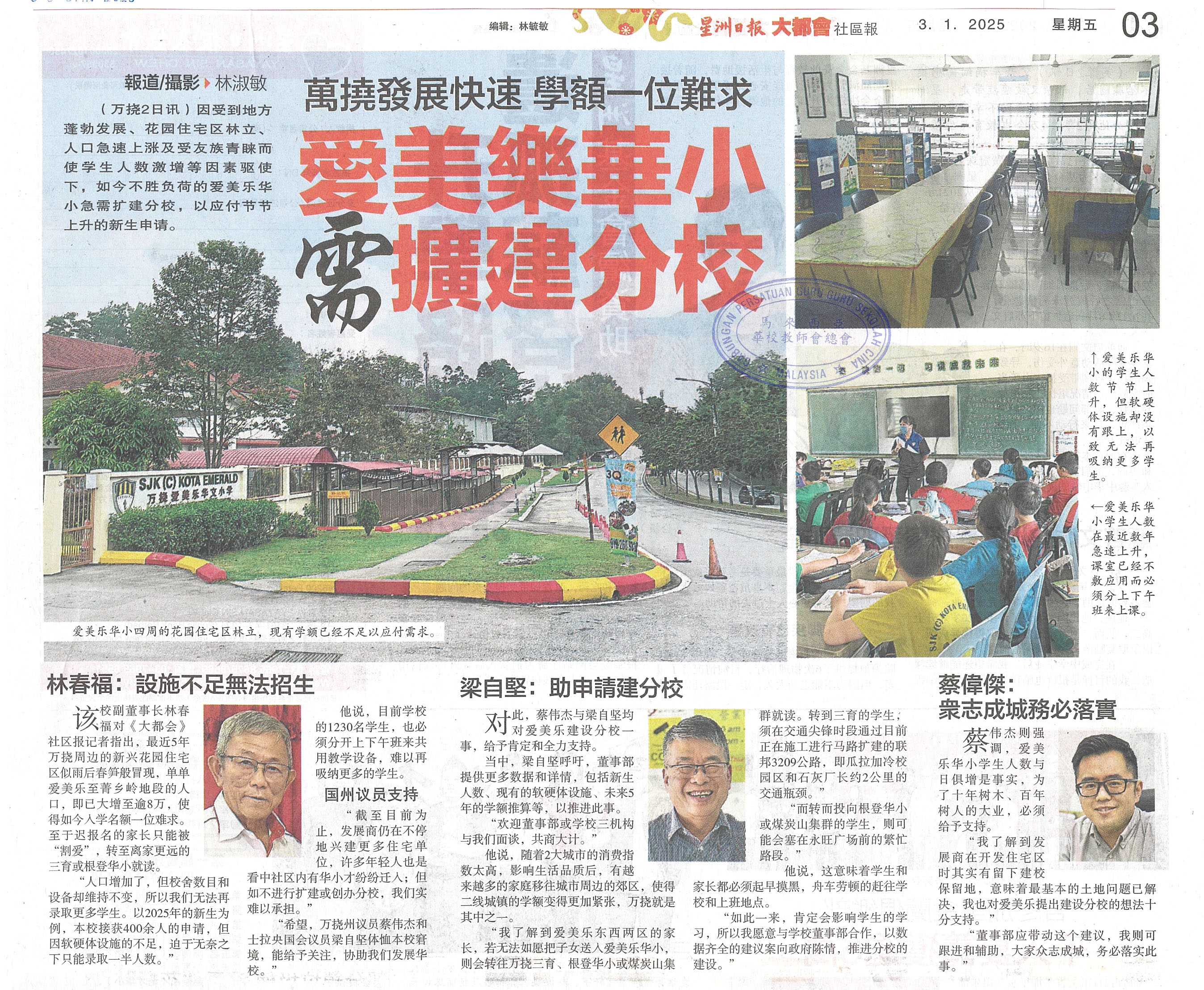 万挠发展快速 学额一位难求 爱美乐华小需扩建分校